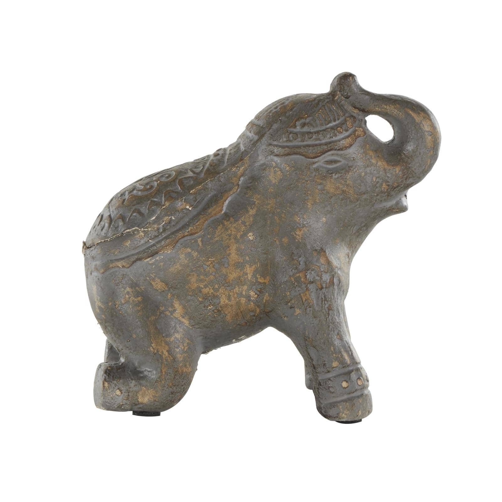 10.5" Dark Gray & Brown Handmade Distressed Paper Mache Elephant Sculpture
