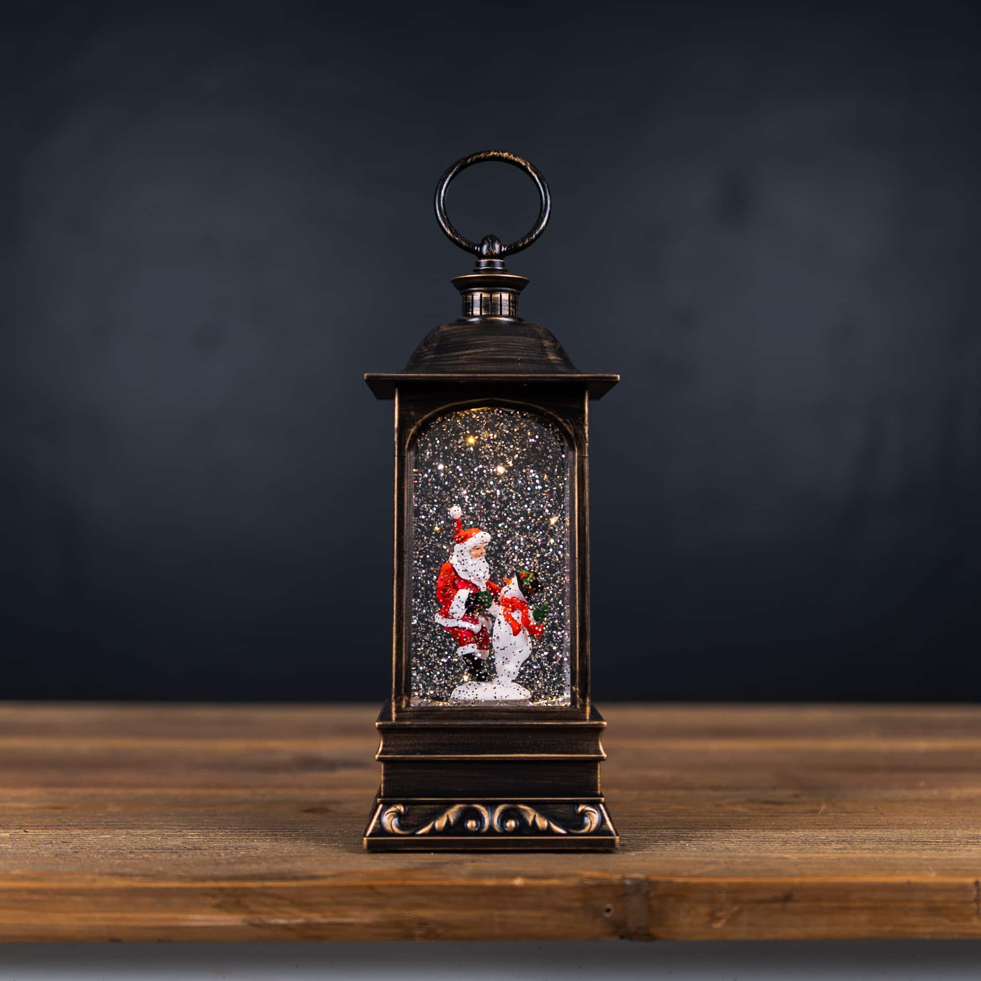 10.5" LED Snow Globe Lantern with Santa and Snowman