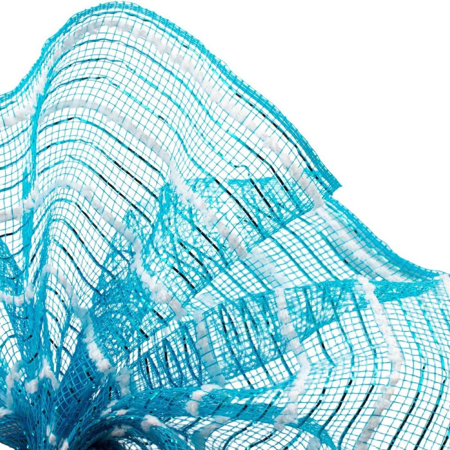 10.5" Metallic Cotton Drift Mesh Ribbon: Turquoise/White (10 Yards)