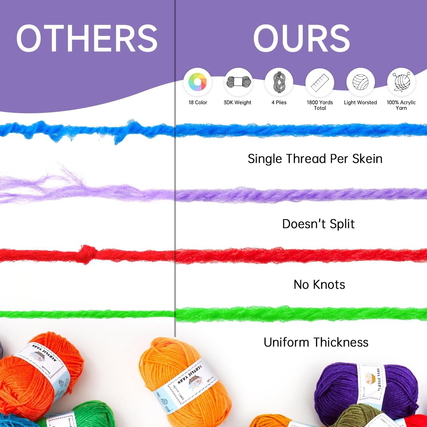 105 PCS Crochet Kit - 18 Acrylic Yarn Skeins with Hooks (+Canvas Bag)