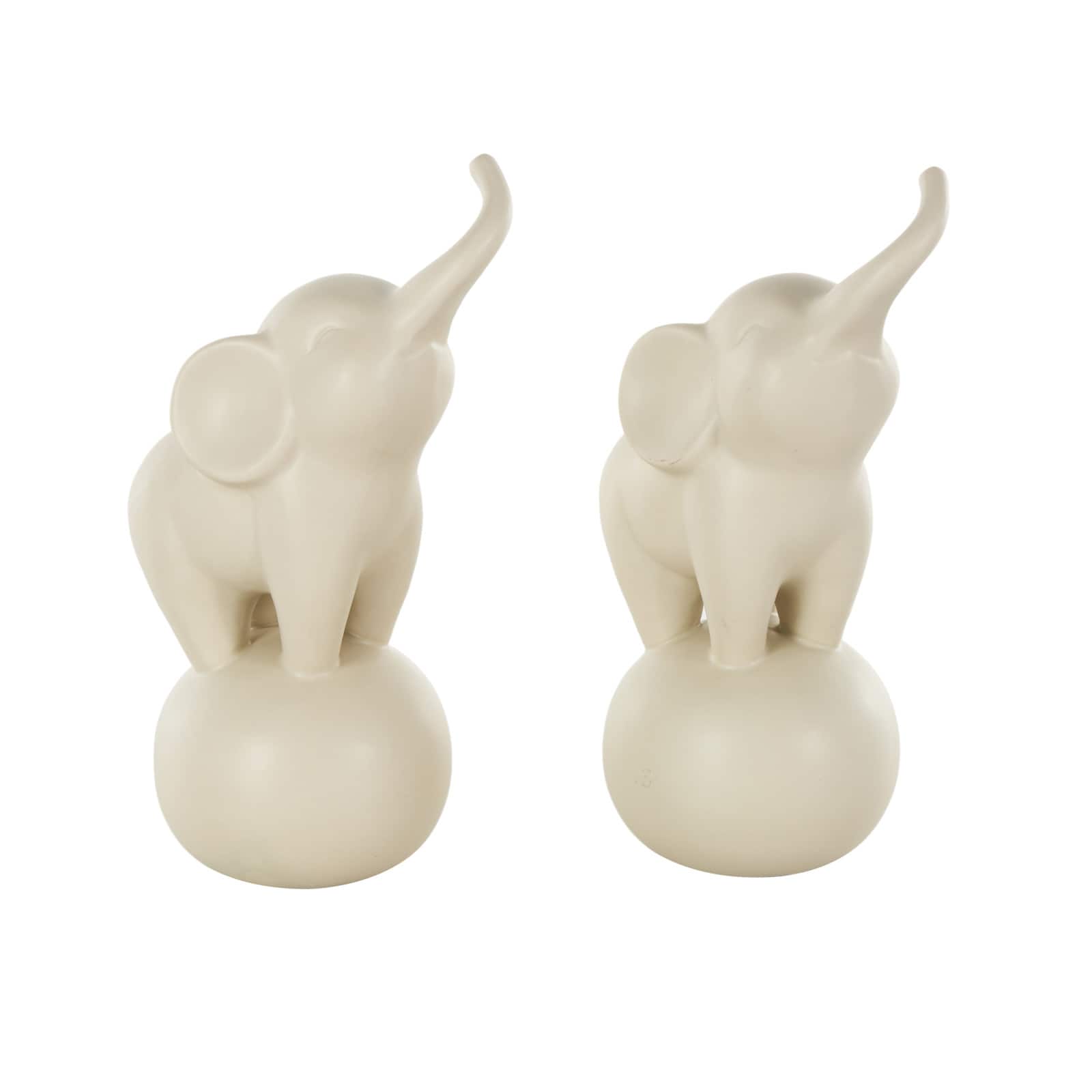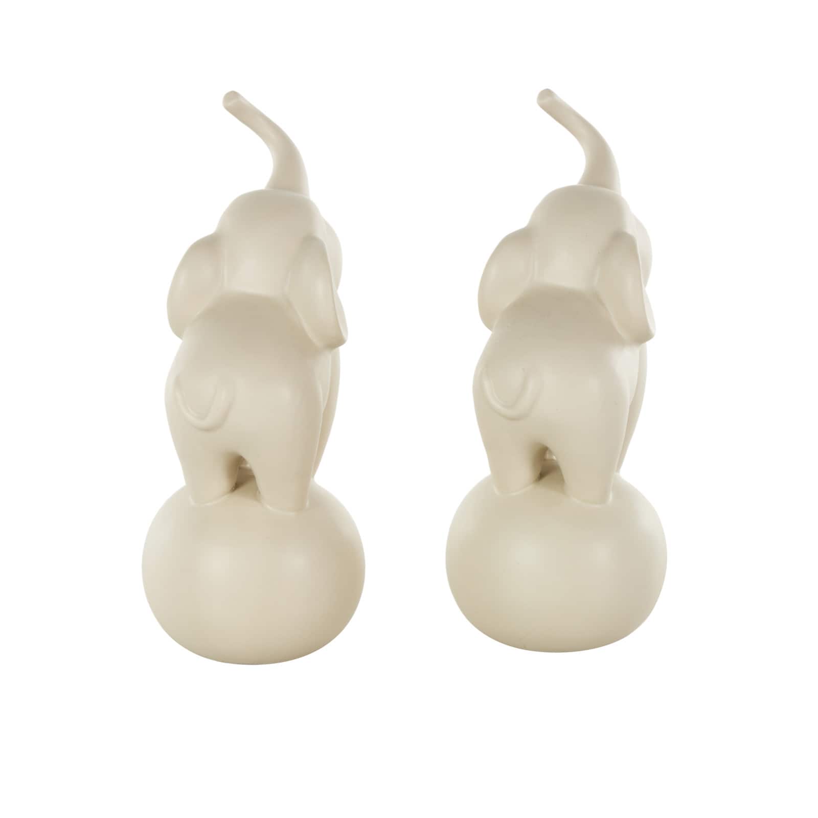 10.5" White Ceramic Elephant Trumpeting Decorative Sculpture with Round Base Set