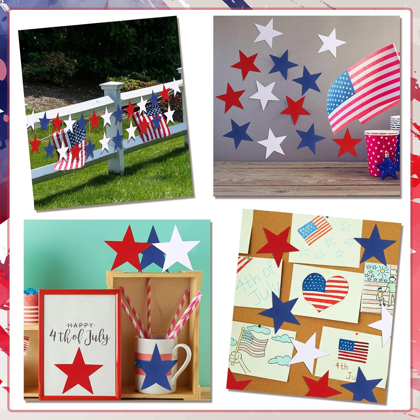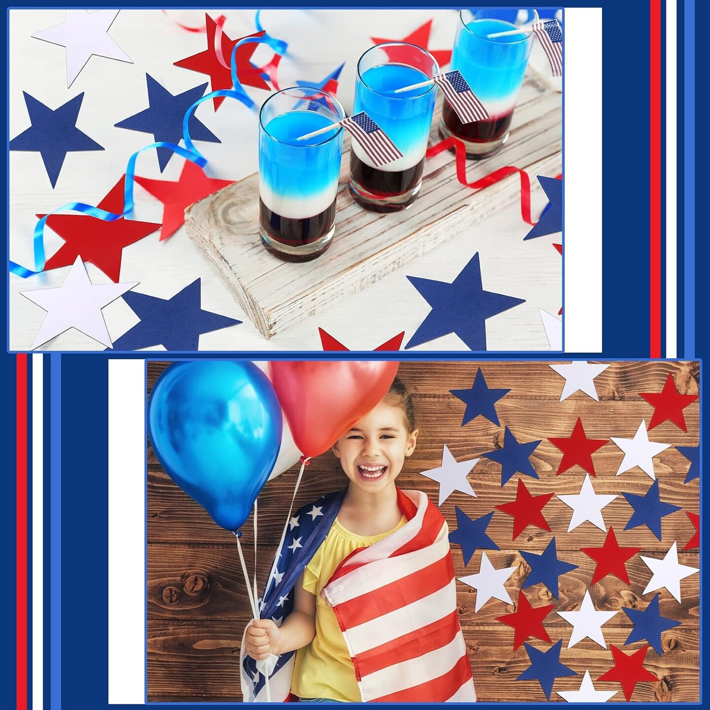 108 Pcs Patriotic Stars Cut Outs 4th of July Decor Red White Blue