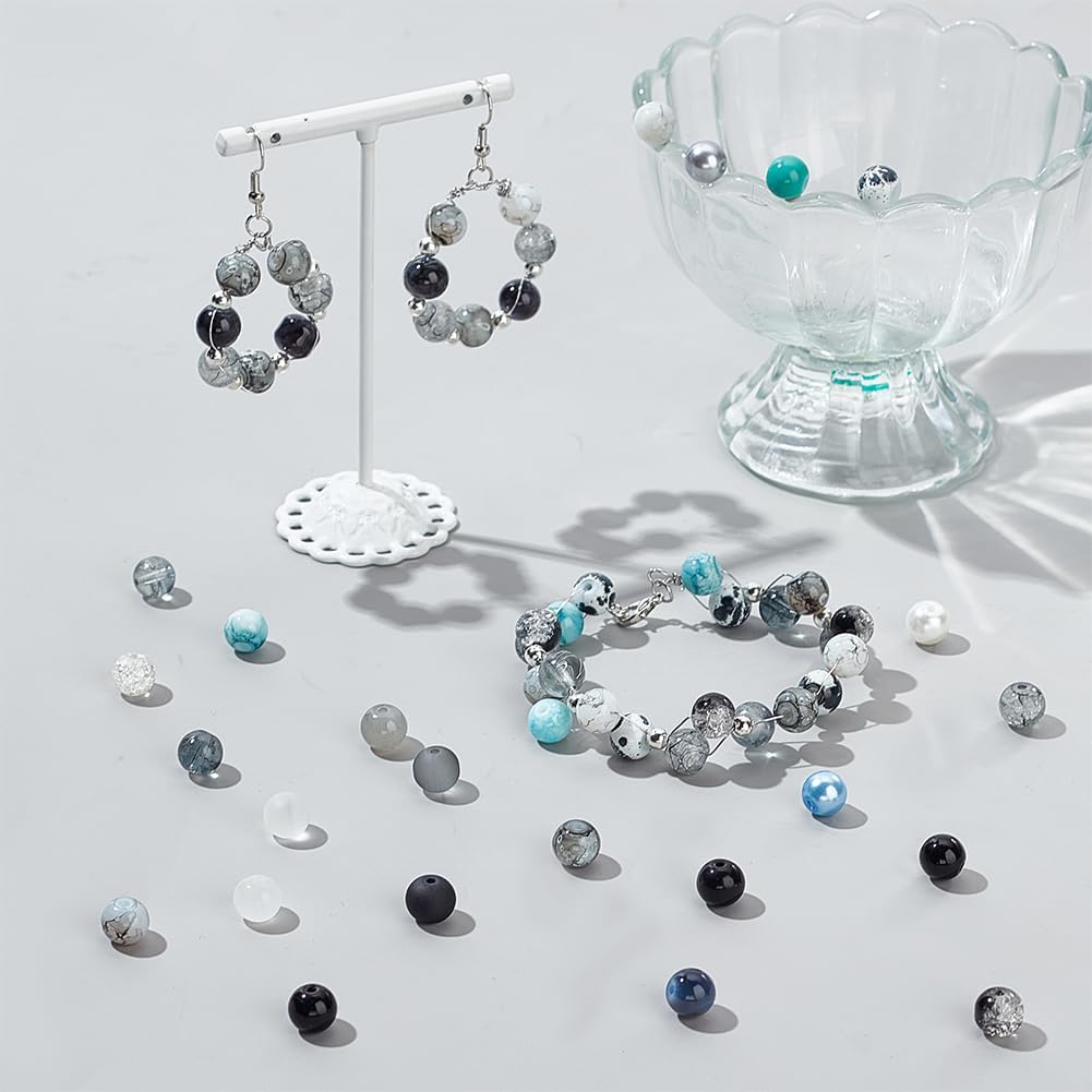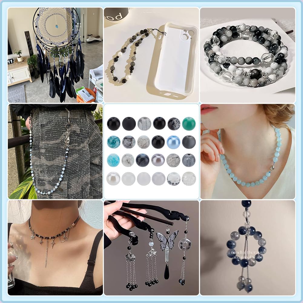 1080pcs 8mm Glass Beads 24 Color Black Bracelet Beads Rosary Beads Round Marble Loose Beads Crystal Spacers