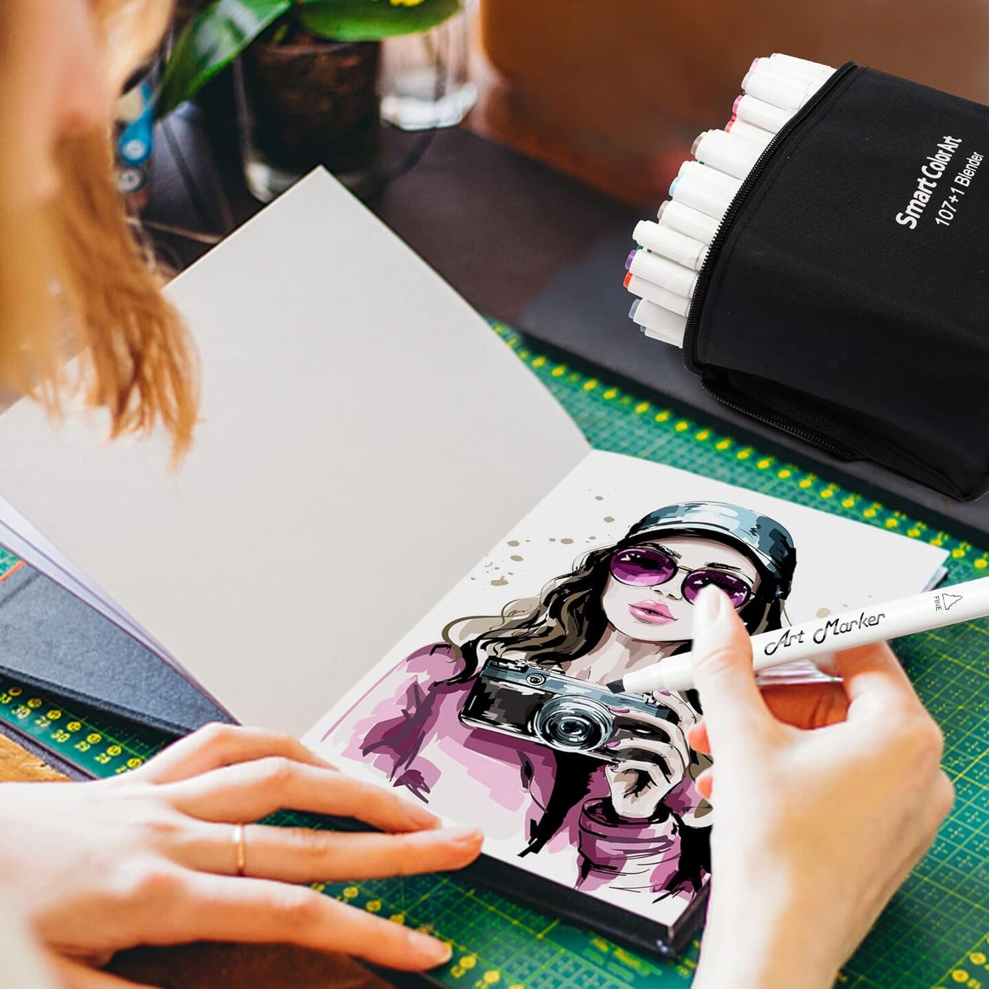 108-Color Dual-Tip Alcohol Marker Set – 107 Markers + 1 Blender with Case for Drawing & Coloring