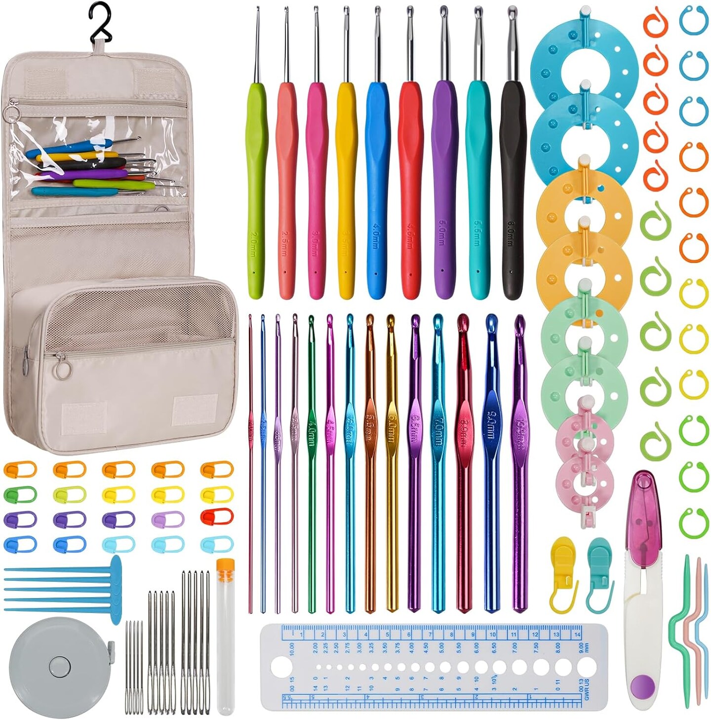 108PCS Crochet Kit for Beginners 14 Sizes Ergonomic Crochet Hooks with Storage Bag