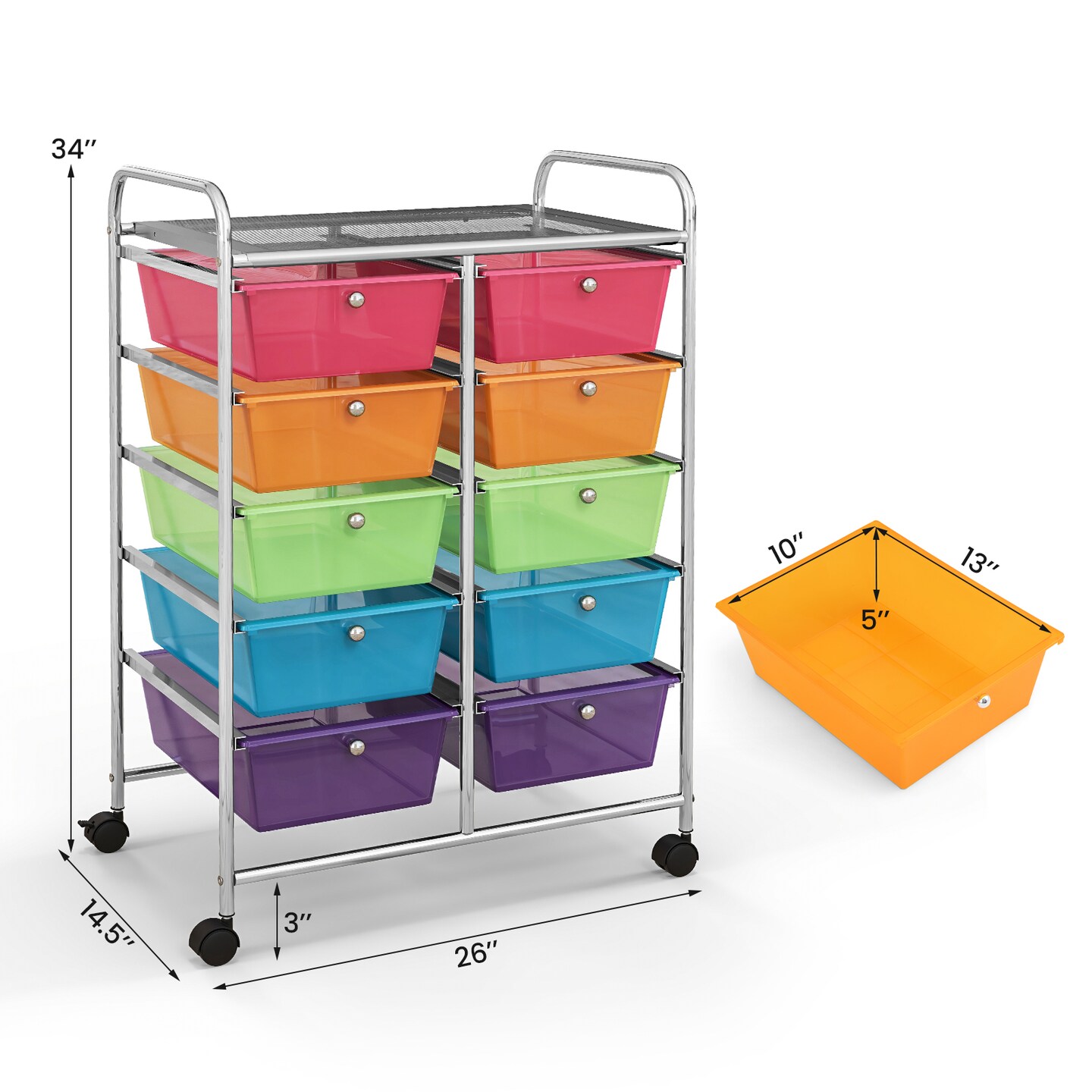 10-Drawer Rolling Storage Cart with Lockable Wheels Metal Frame