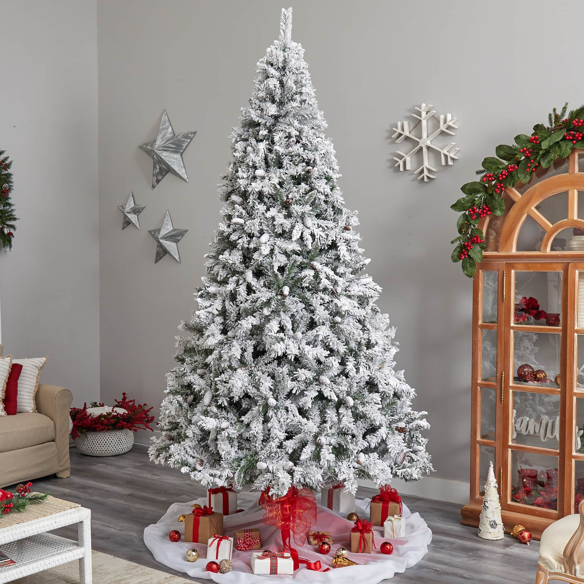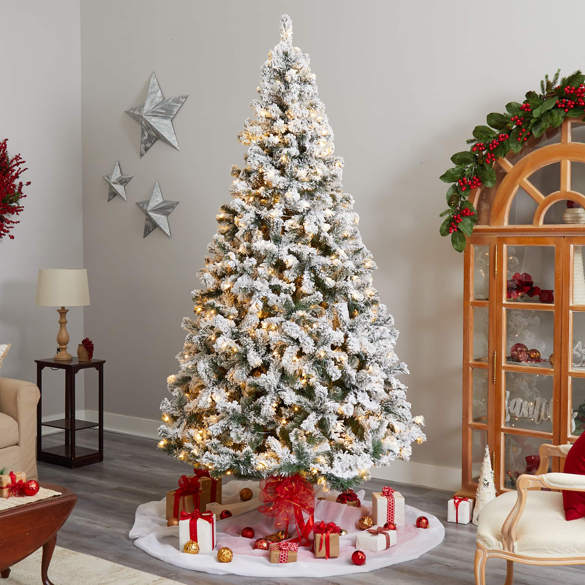 10ft. Pre-Lit Flocked West Virginia Fir Artificial Christmas Tree, Clear LED Lights