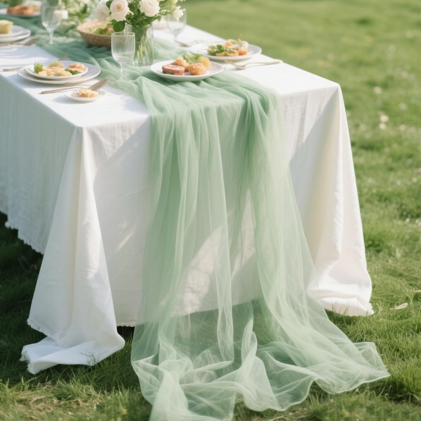 10ft Rustic Cheese Cloth Table Runner(Sage)