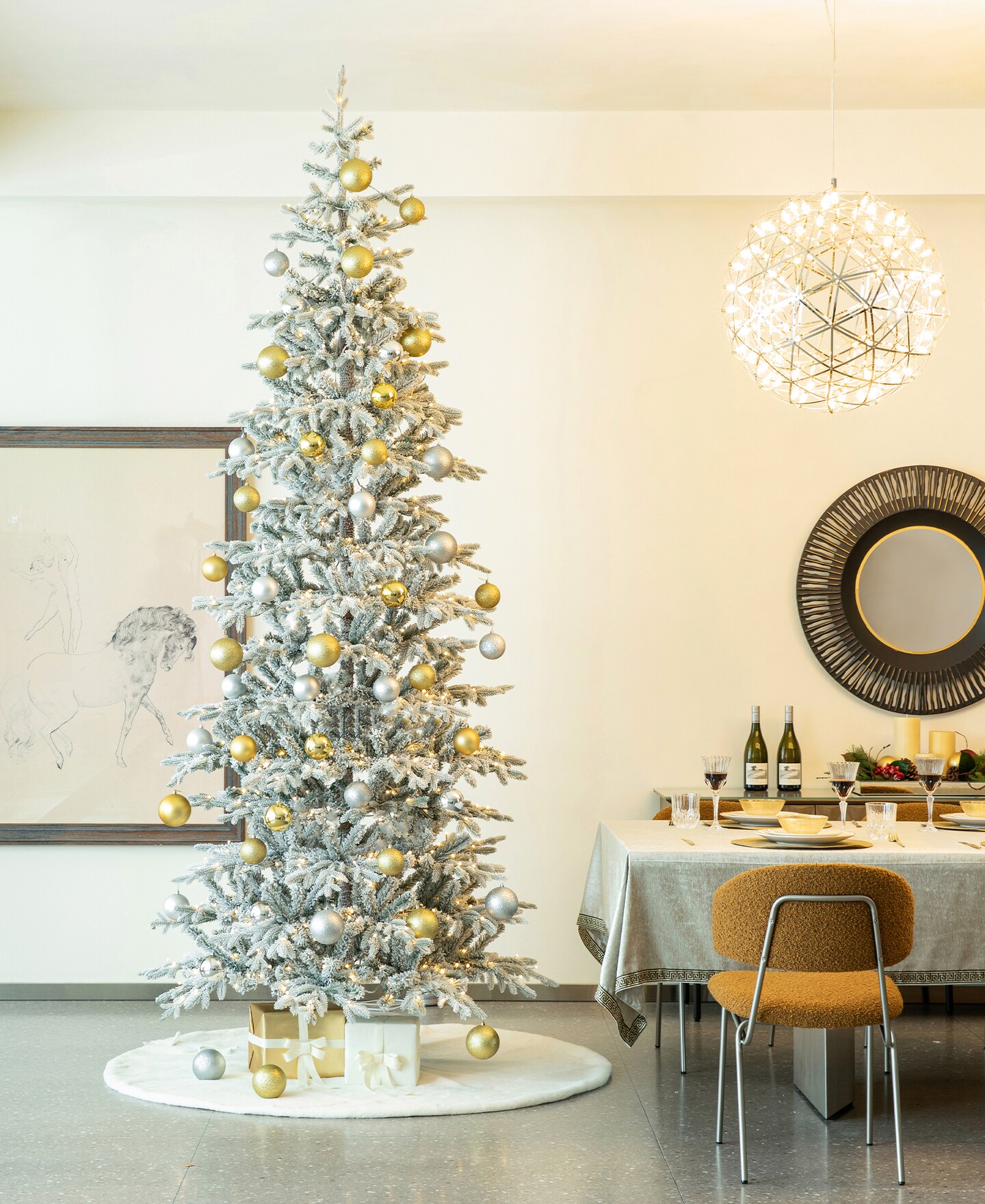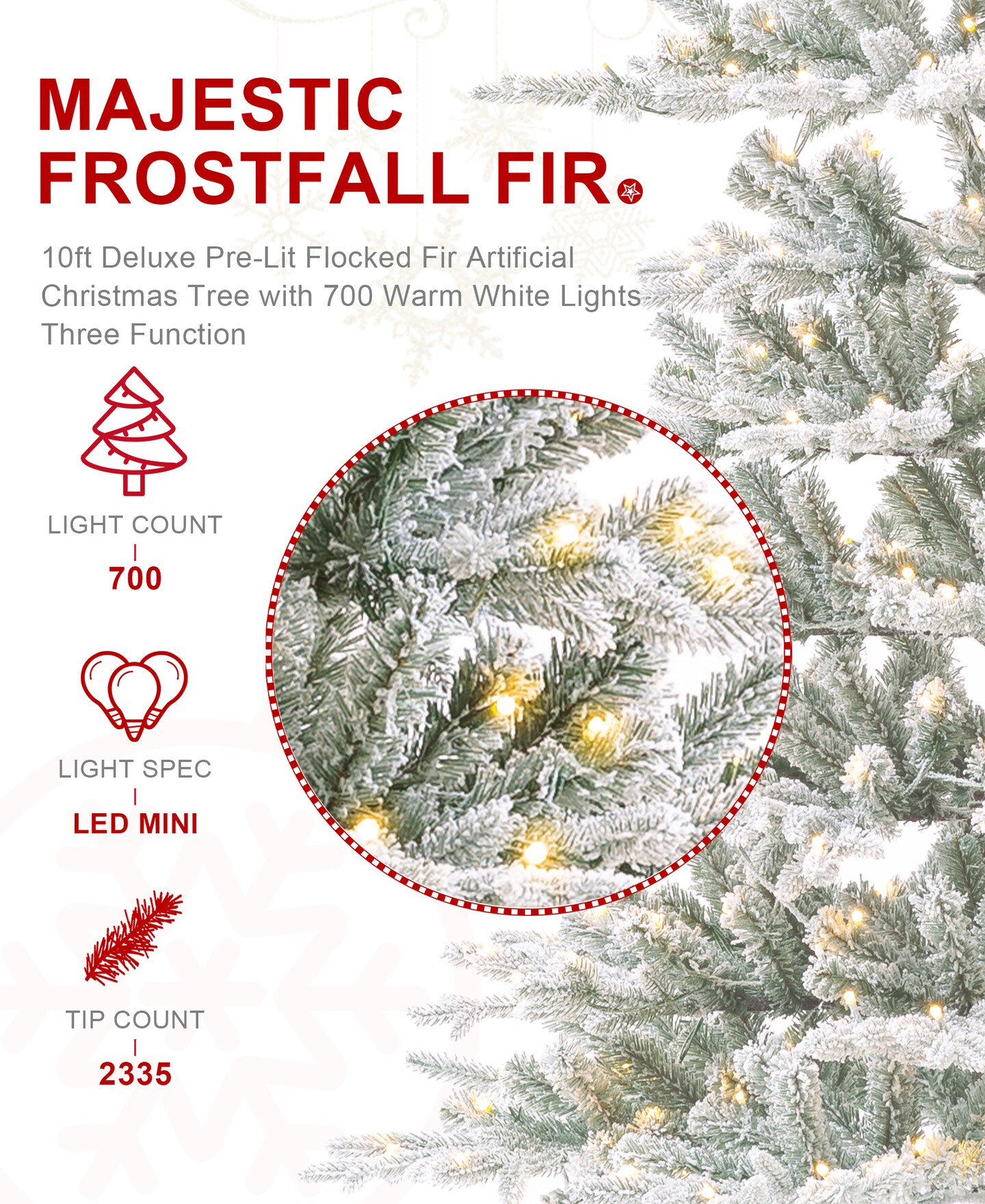 10FT/8FT Deluxe Pre-Lit Flocked Slim Fir Artificial LED Christmas Tree With the Remote Controller, Three Function
