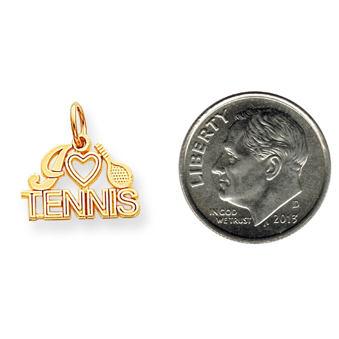 10K Gold I Love Tennis Charm Heart Racquet Sports New 18 X 17mm Jewerly