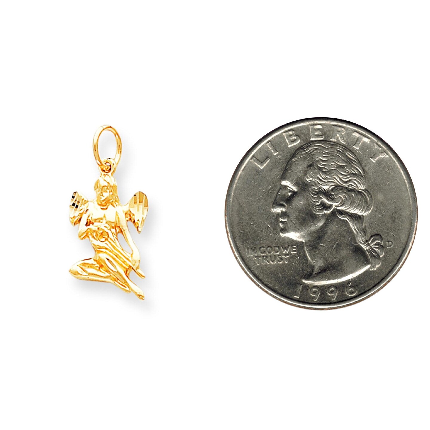 10K Yellow Gold Angel Charm Pendant Religious New |D 25 X 13mm Jewerly