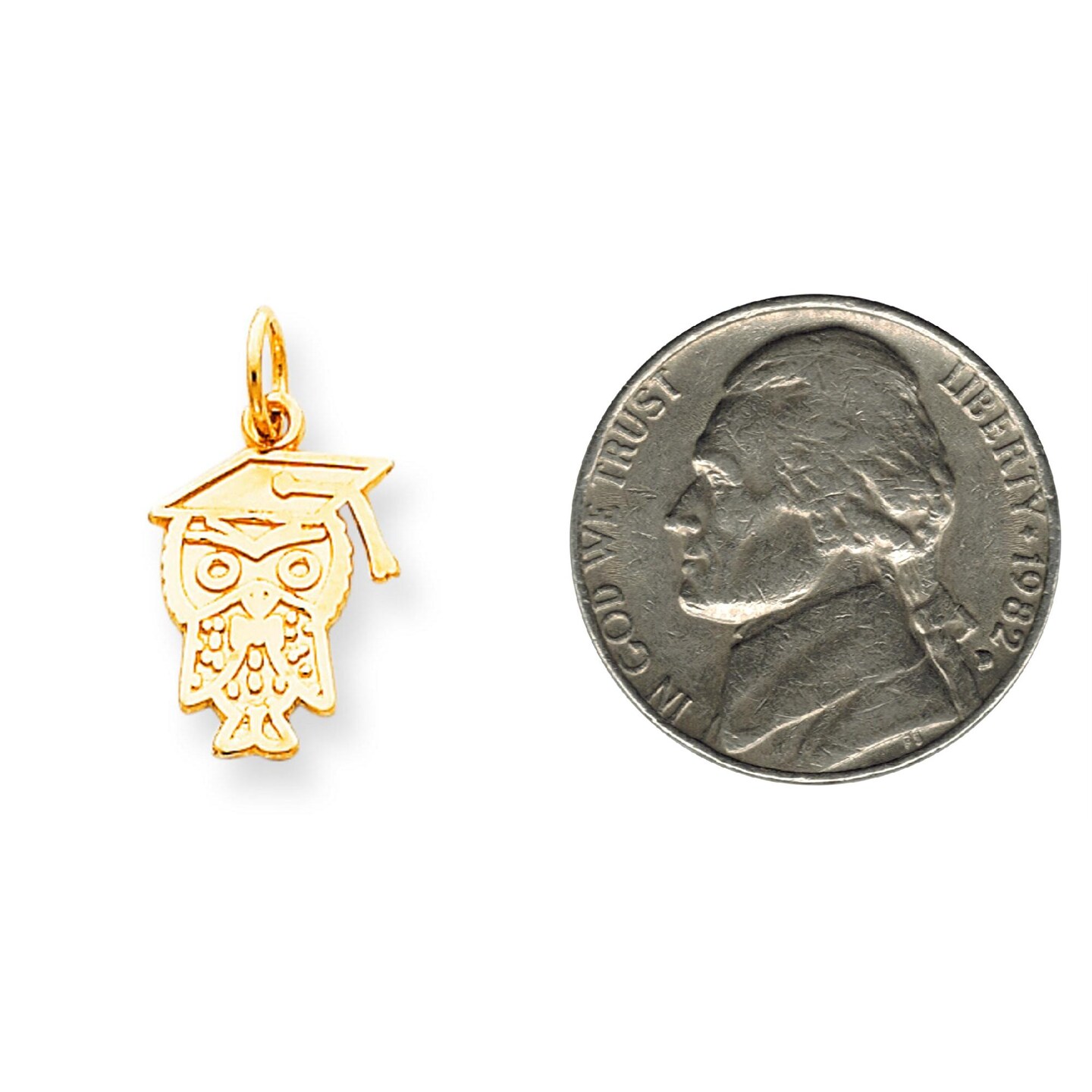 10K Yellow Gold Graduation Owl Charm School Jewelry 20mm x 11mm