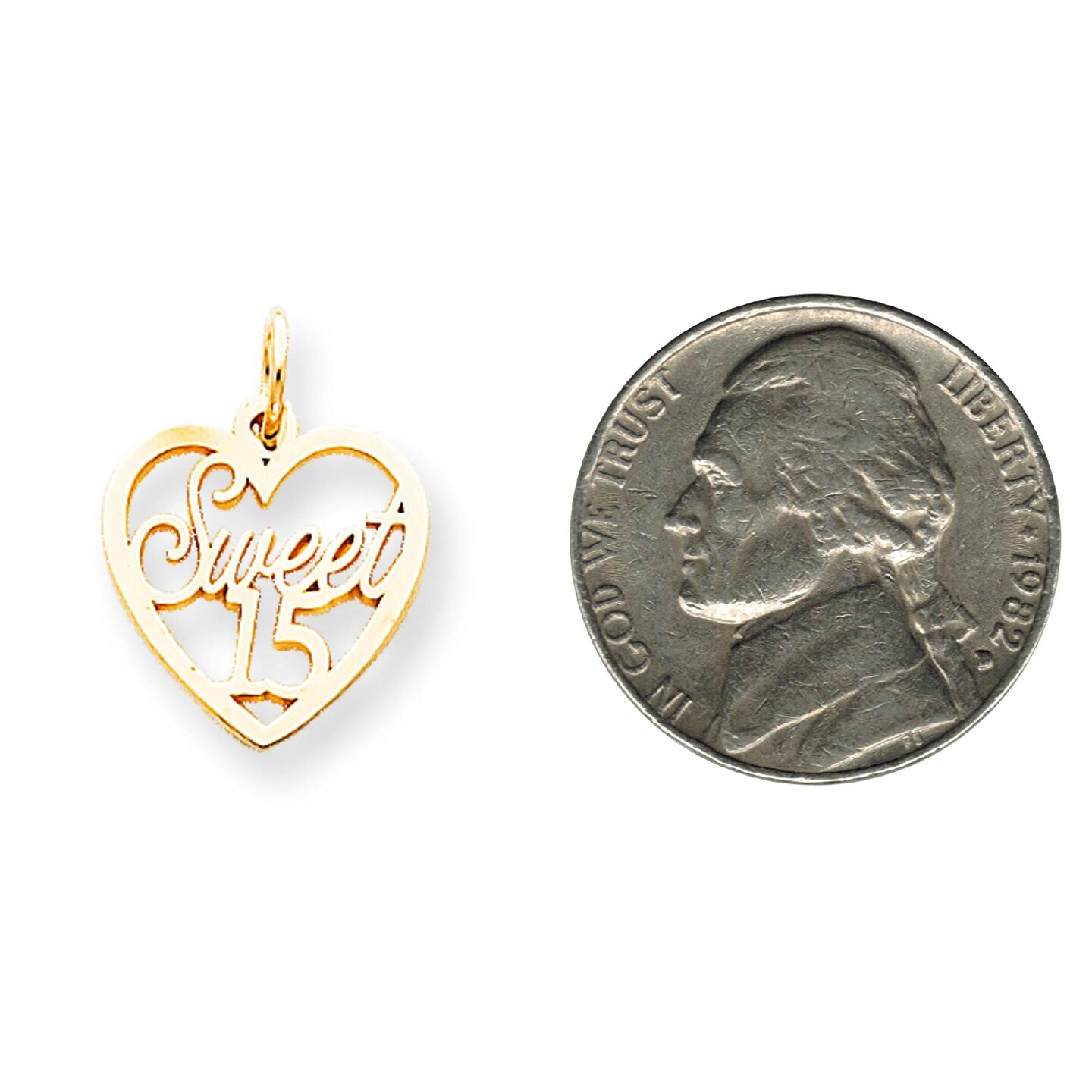 10K Yellow Gold Sweet 15 in Heart Charm Birthday Jewerly 20mm x 16mm