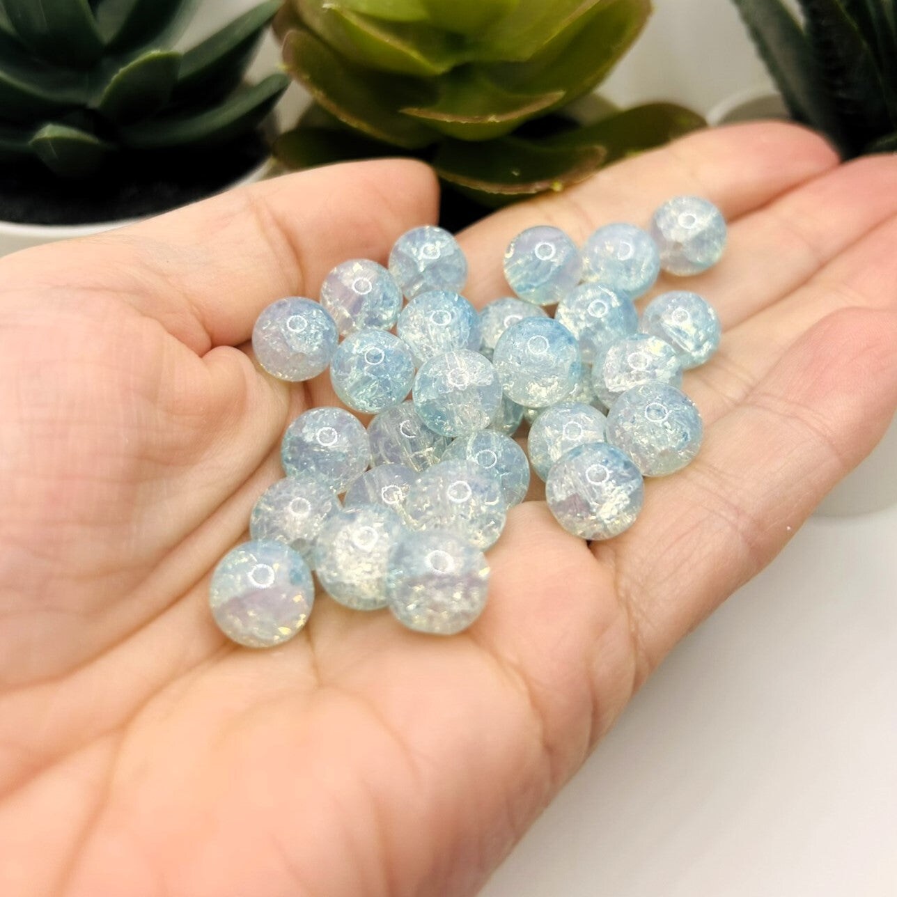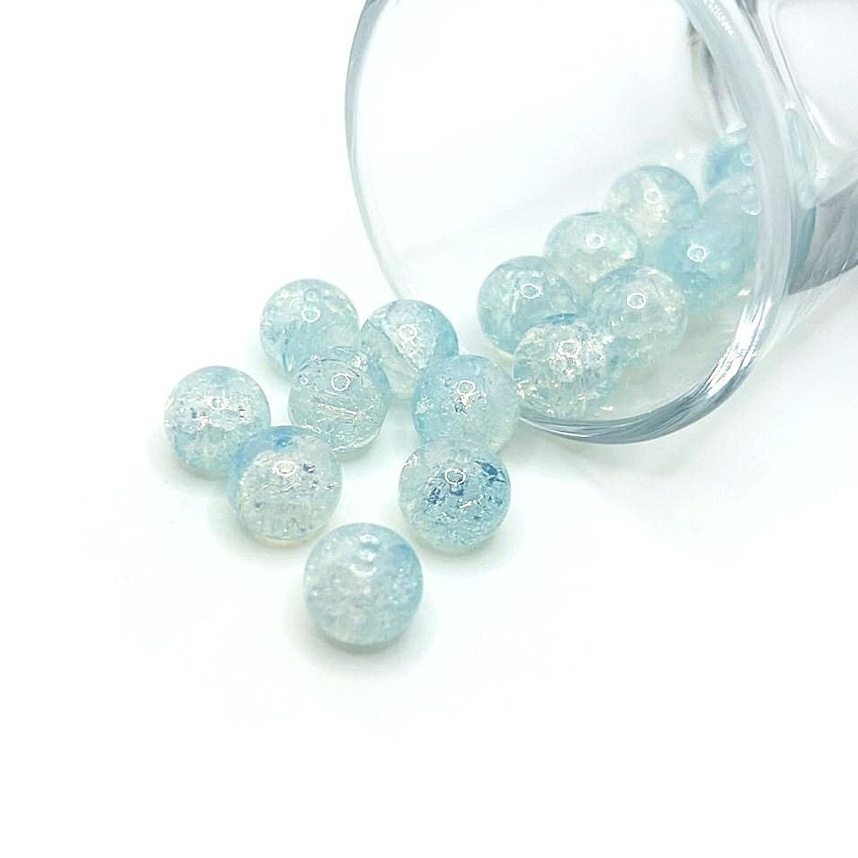 10mm Blue and Clear Crackle Glass Beads