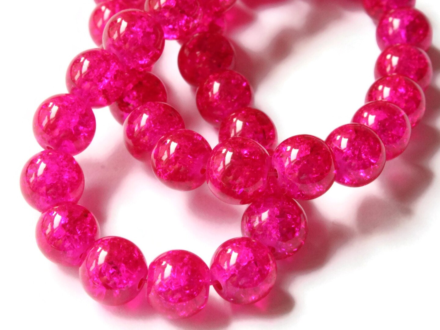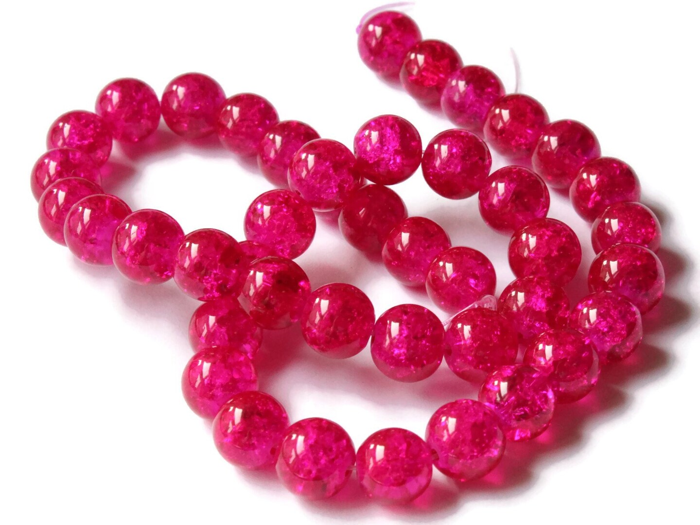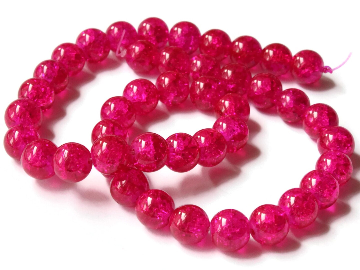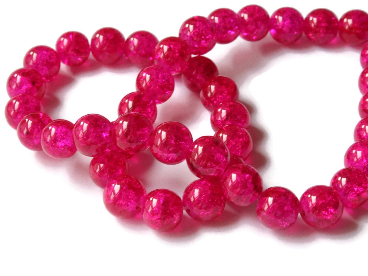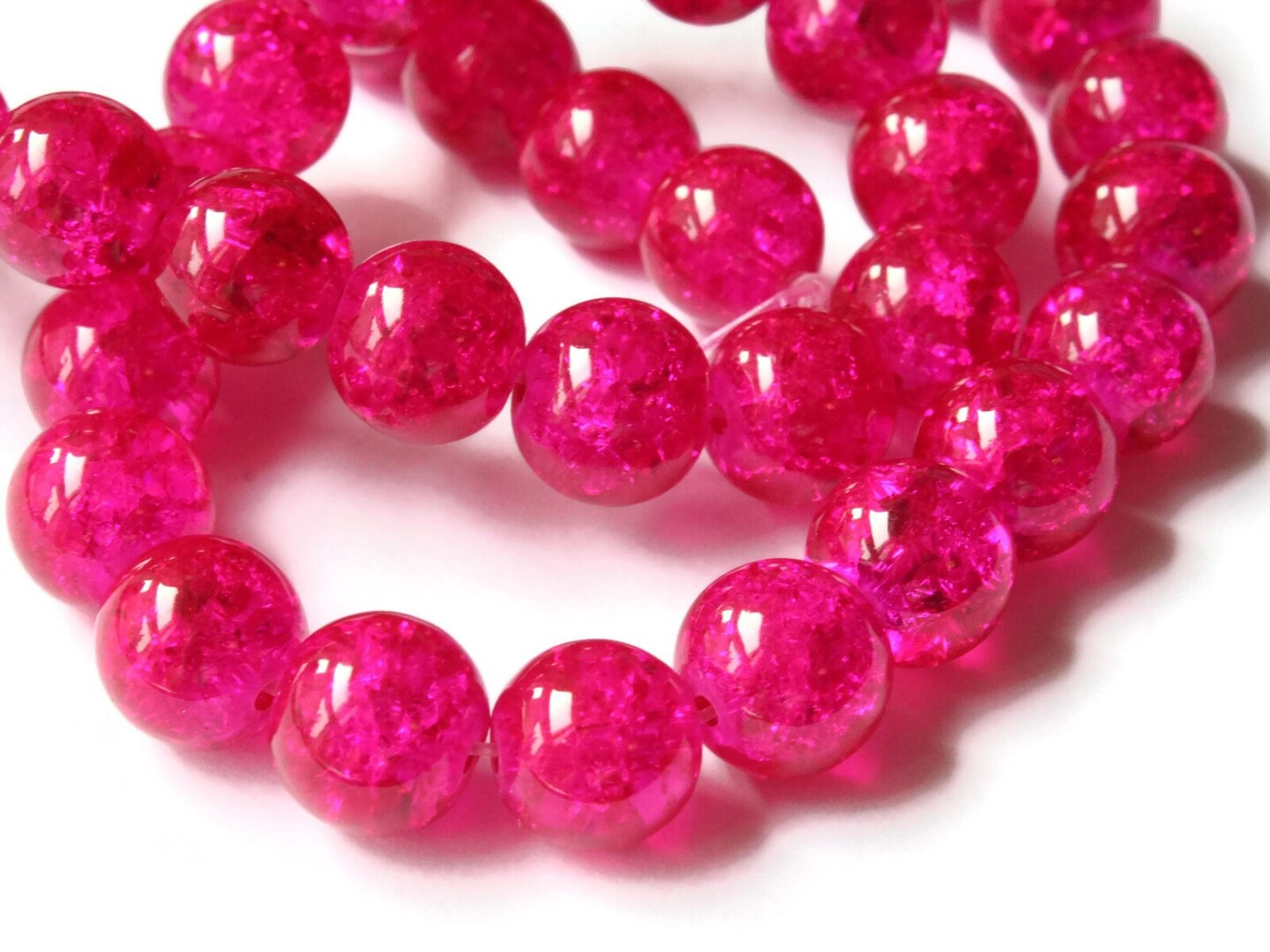 10mm Bright Pink Crackle Glass Round Beads