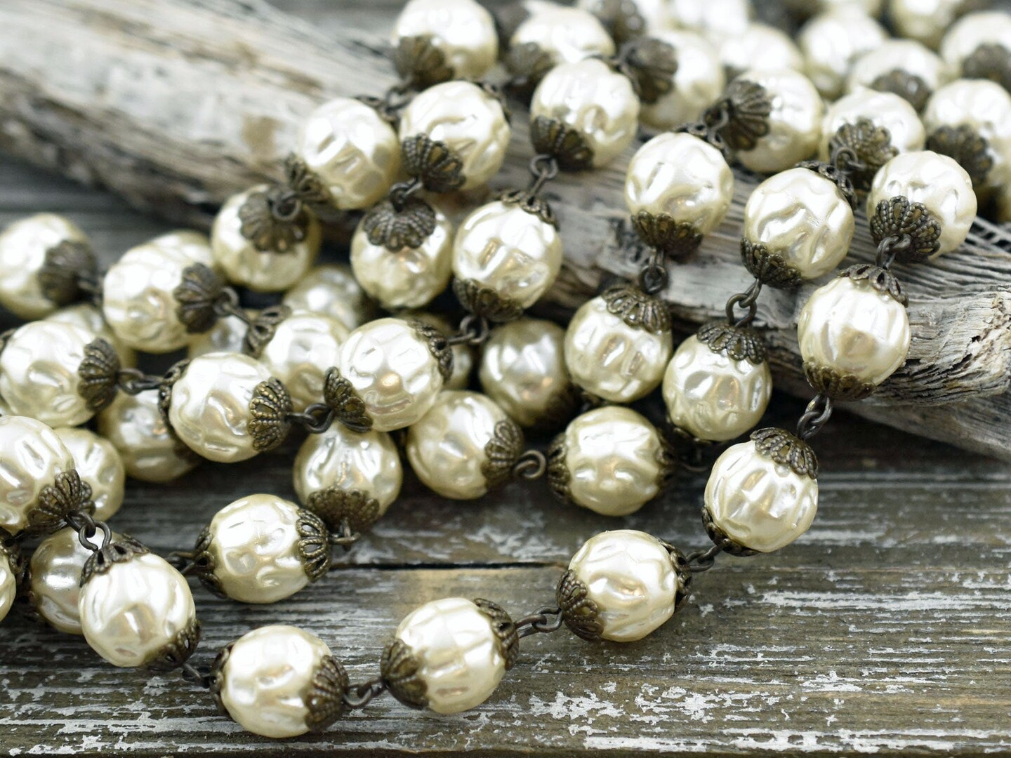 10mm Czech Glass Cream Baroque Pearl Chain with Bronze Caps -- Sold By The Foot