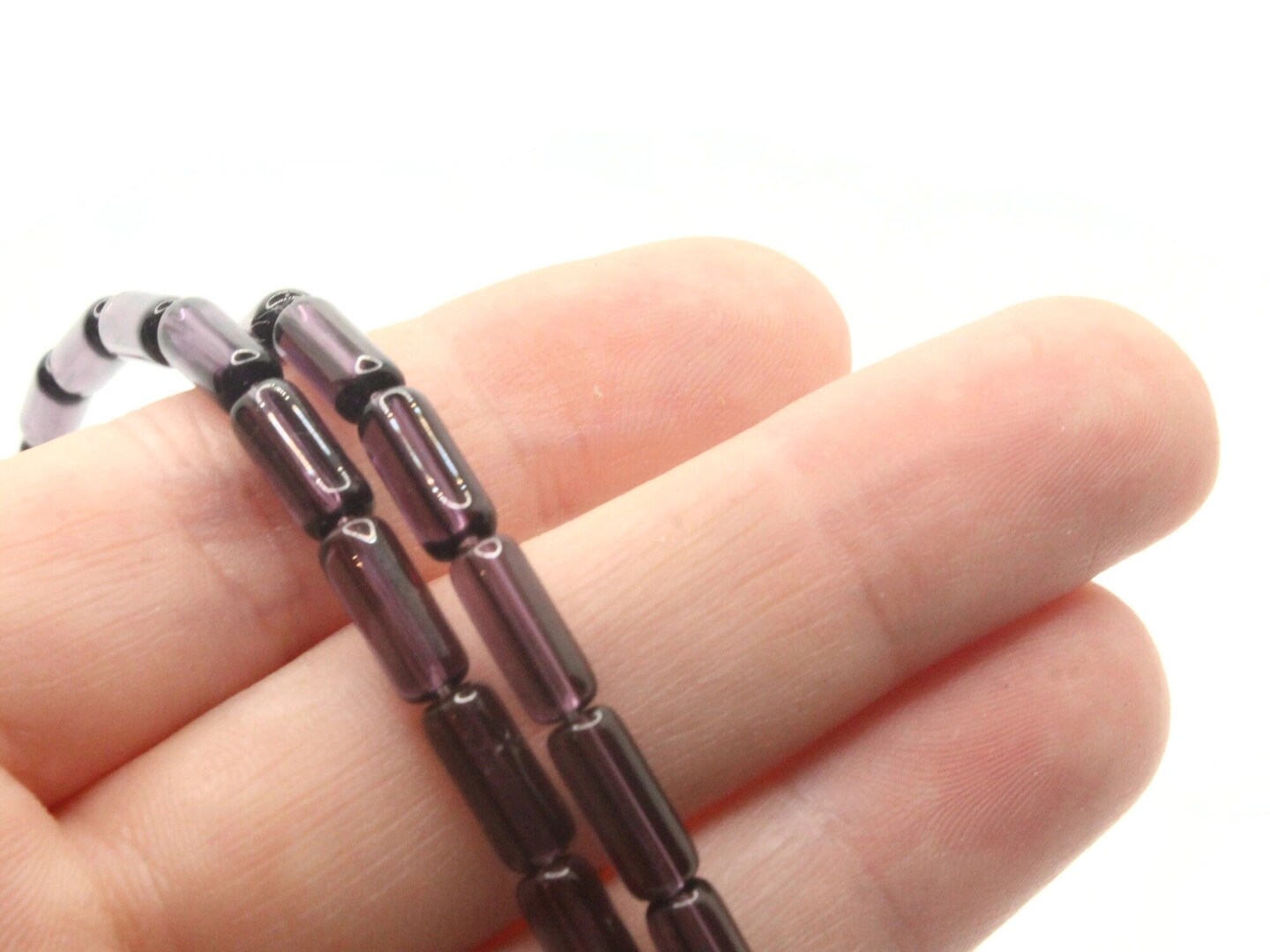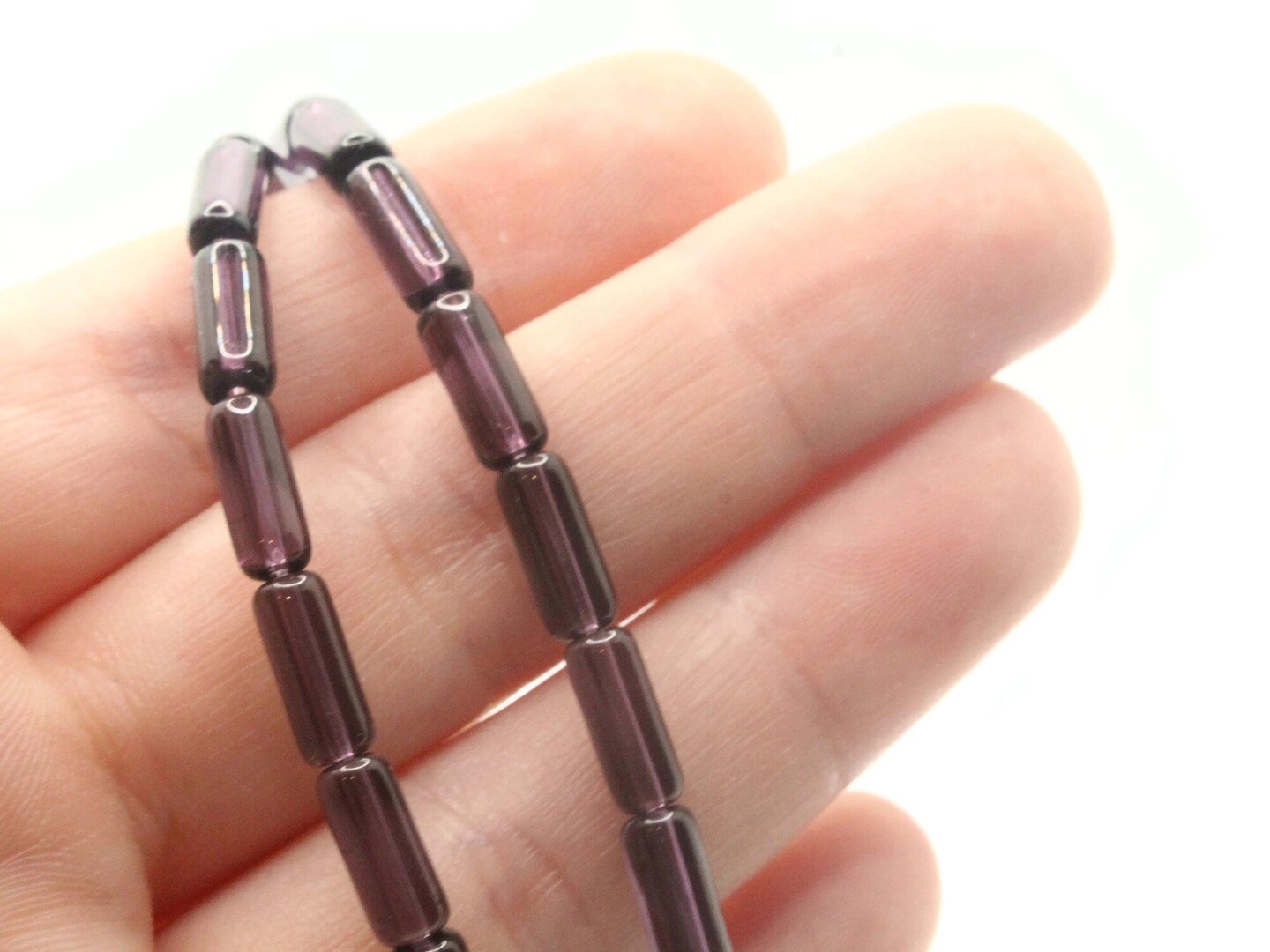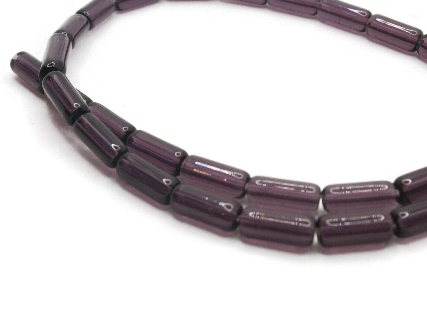10mm Purple Glass Tube Beads Full Strand Transparent Beads