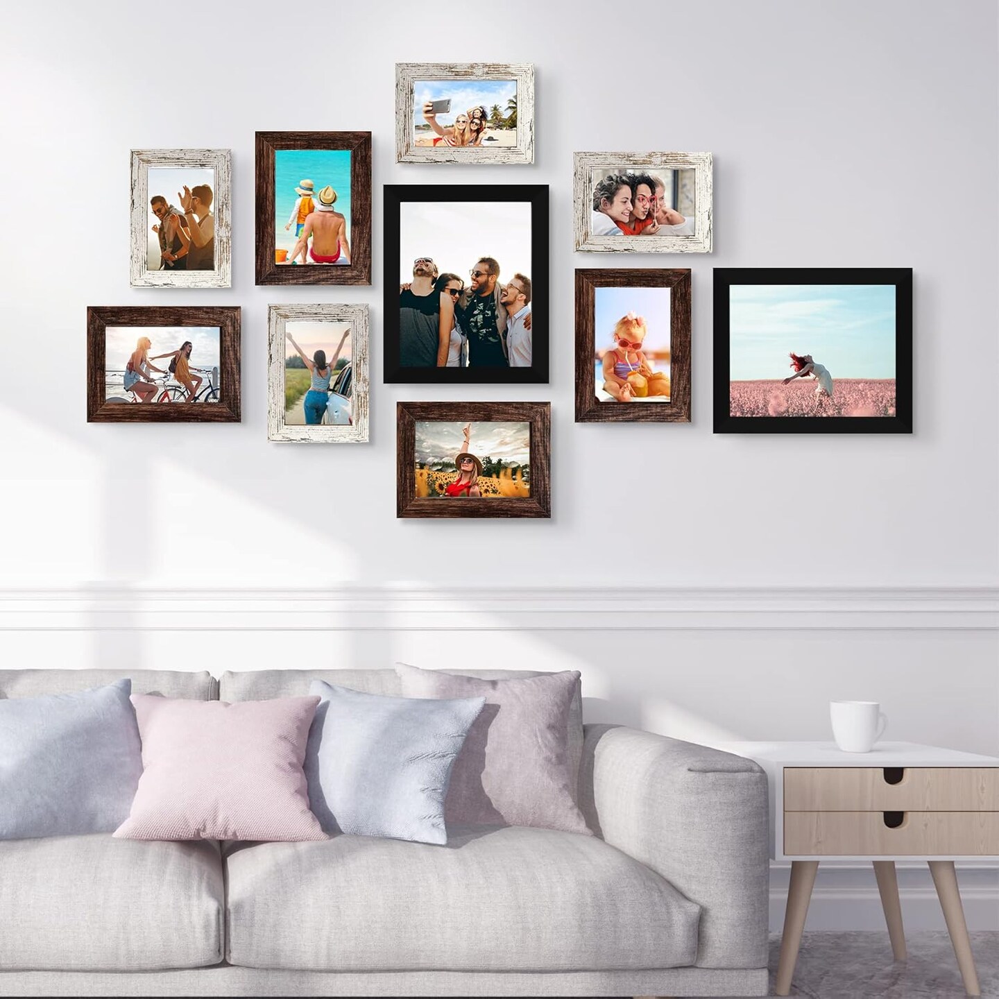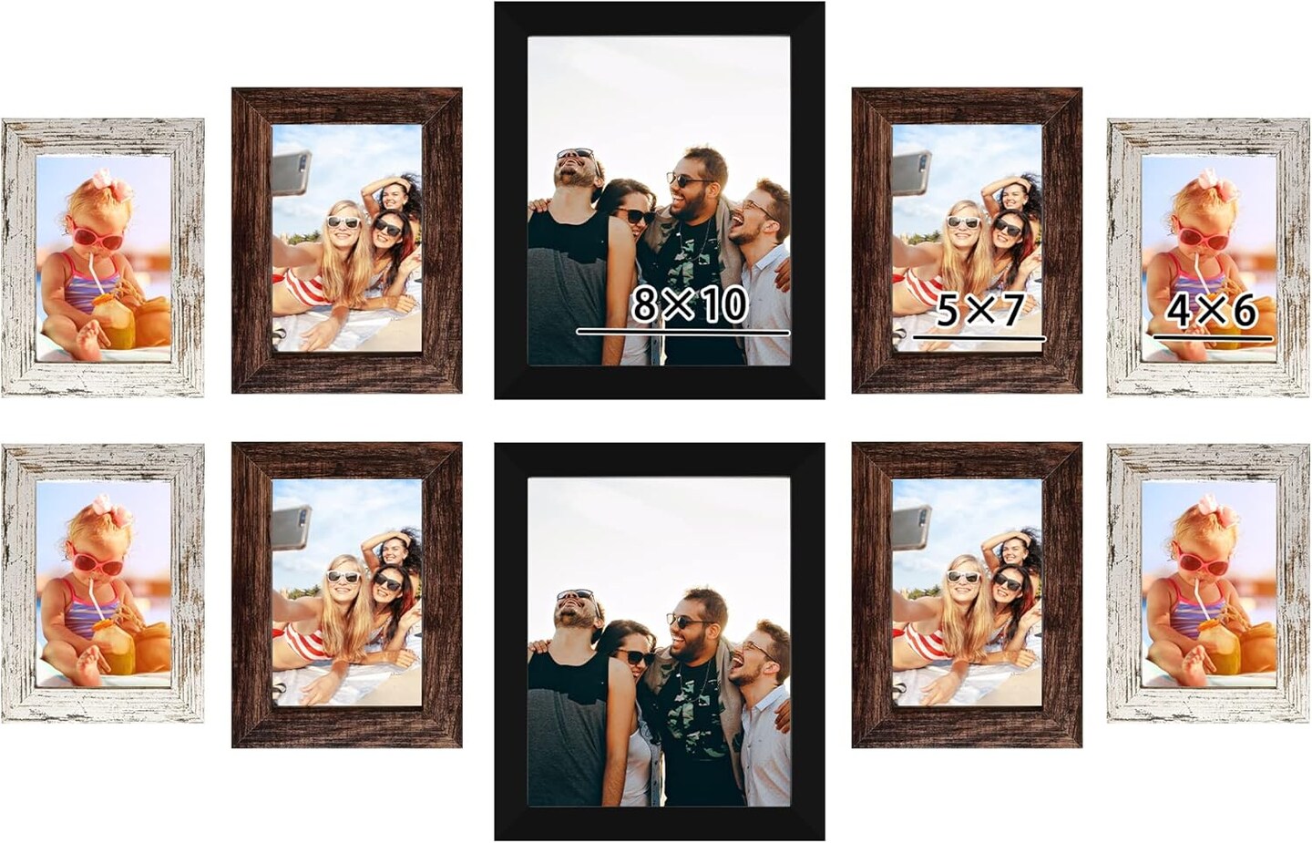 10-Pack Picture Frame Sets - 8x10, 5x7, 4x6 (Black, Brown, Distressed White)