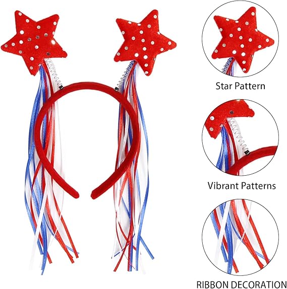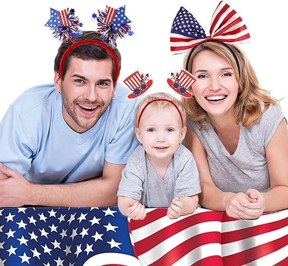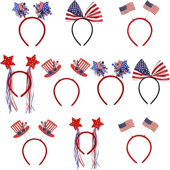 10pcs 4th of July Headbands Patriotic Party Favors Decorations,Star, Uncle Sam Hat, American Flag Accessories Decor for Party Supplies