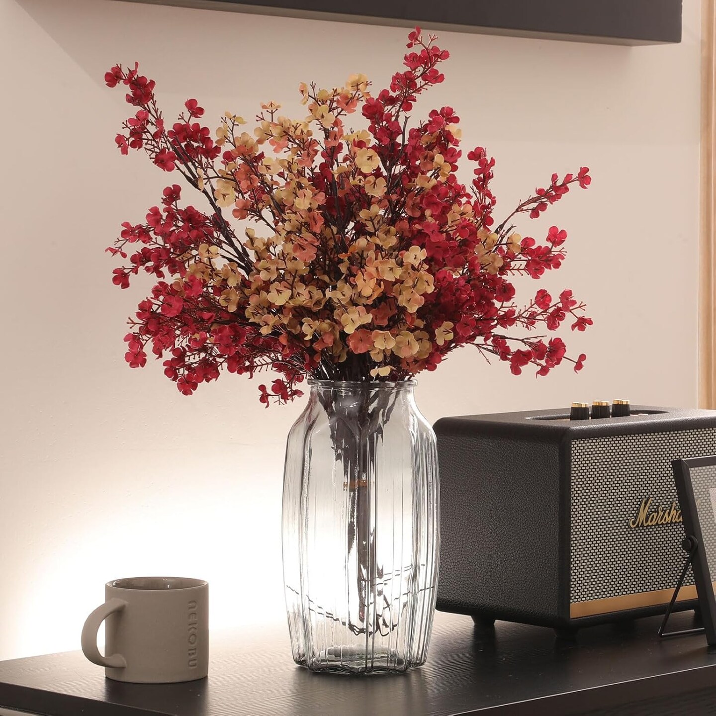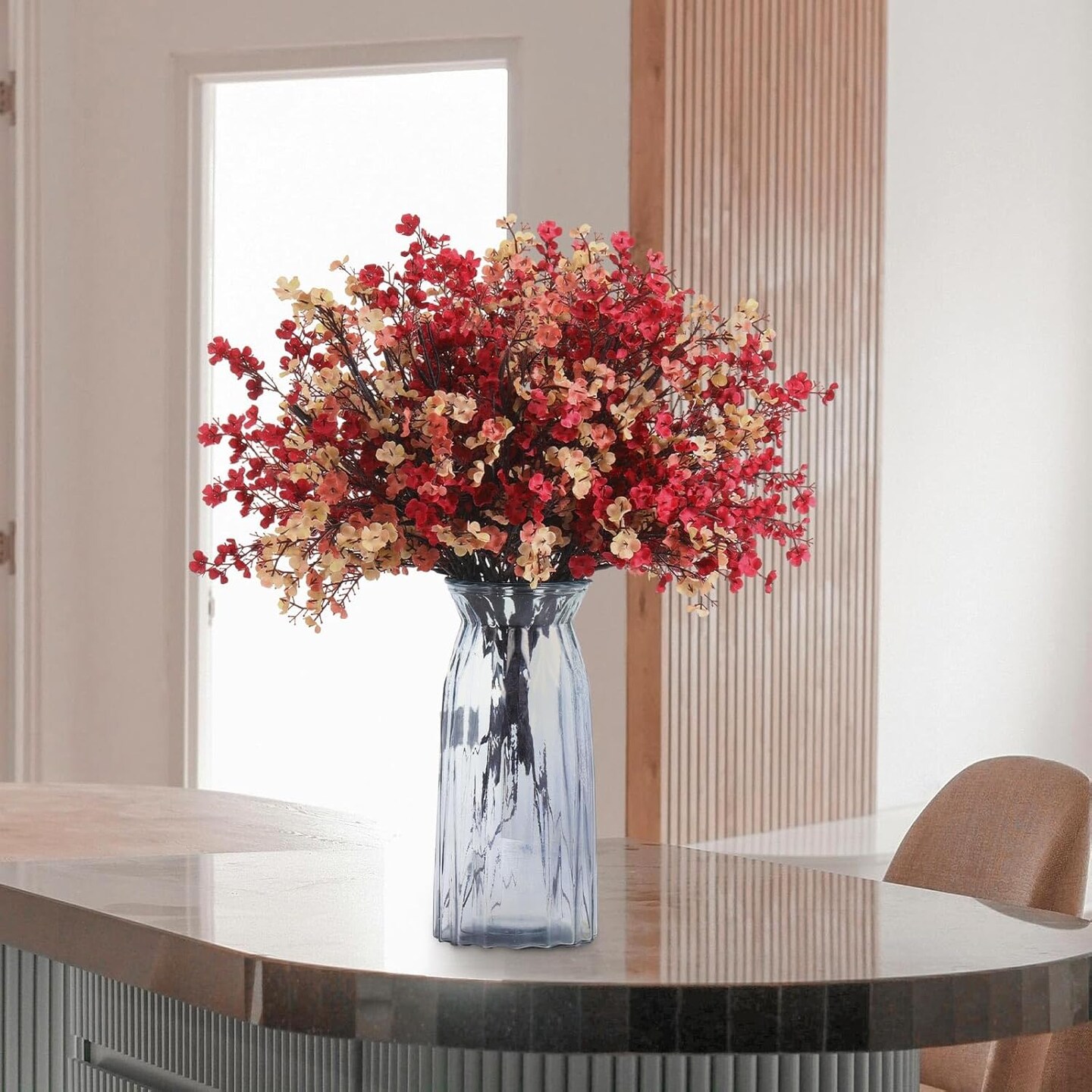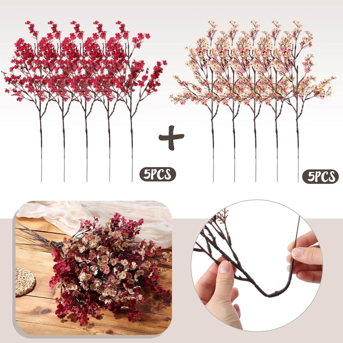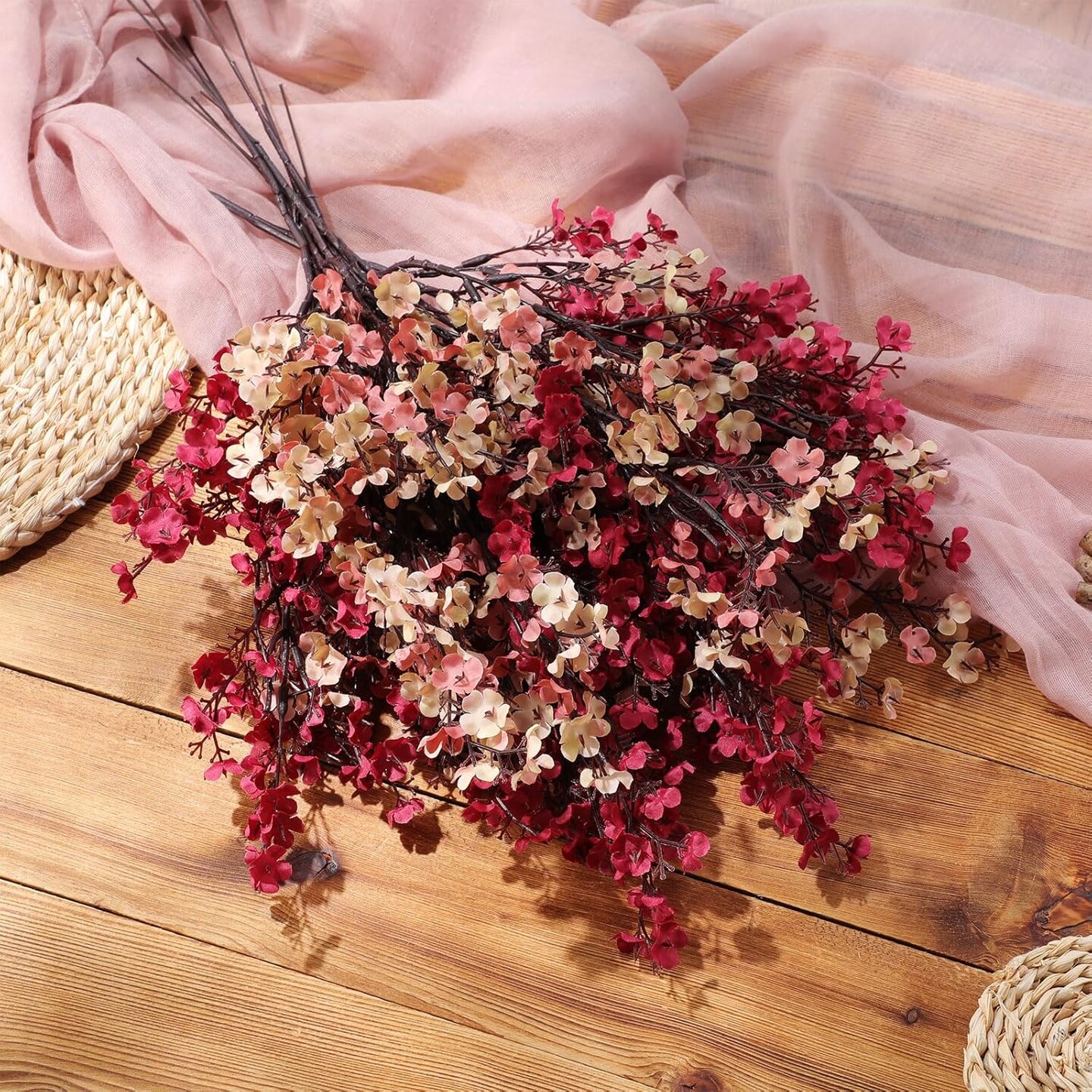 10pcs Babys Breath Artificial Flowers Bulk Faux Flowers European Silk Bouquet Vintage Floral Arrangements Farmhouse Table Centerpieces Vase Fillers for DIY Home Decor Wedding(Burgundy)