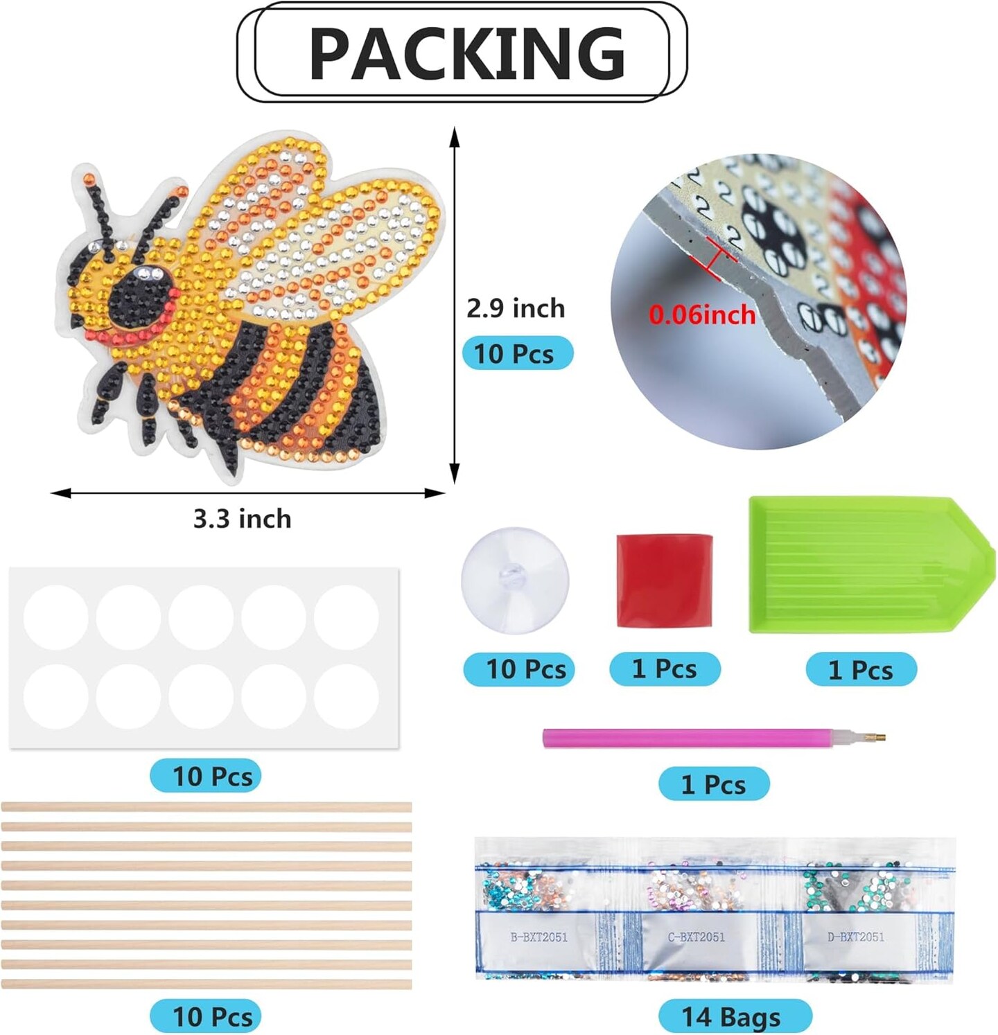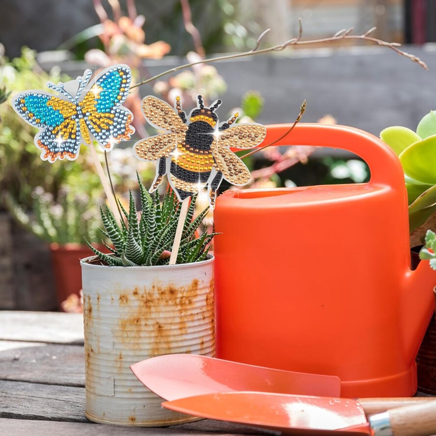 10PCS Diamond Art Garden Stakes – Butterfly, Hummingbird, Ladybug, Bee & Dragonfly DIY Diamond Painting Kit for Indoor & Outdoor Decor