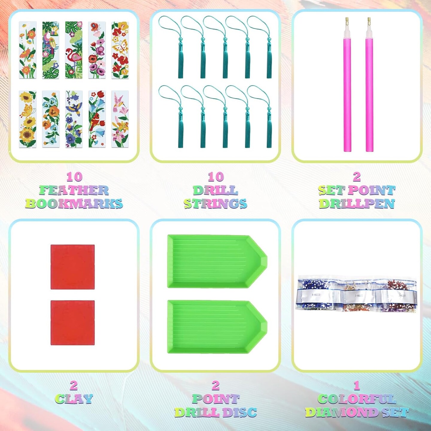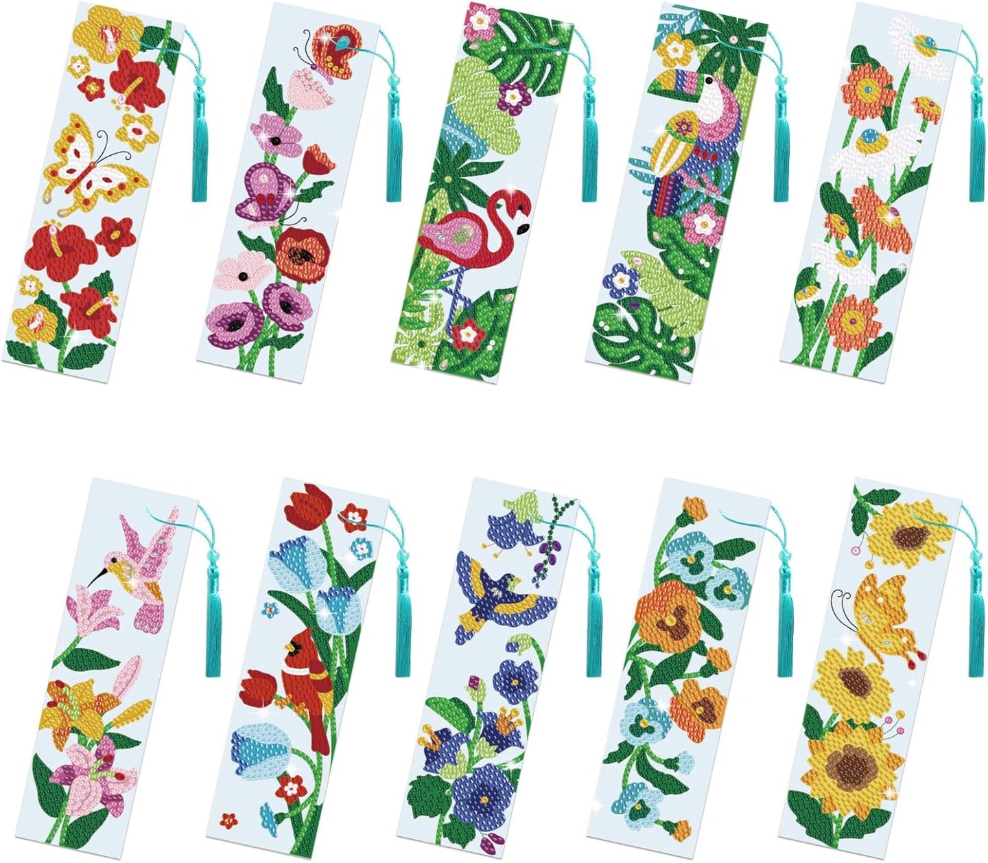10Pcs Flower and Bird Diamond DIY Painting Bookmarks