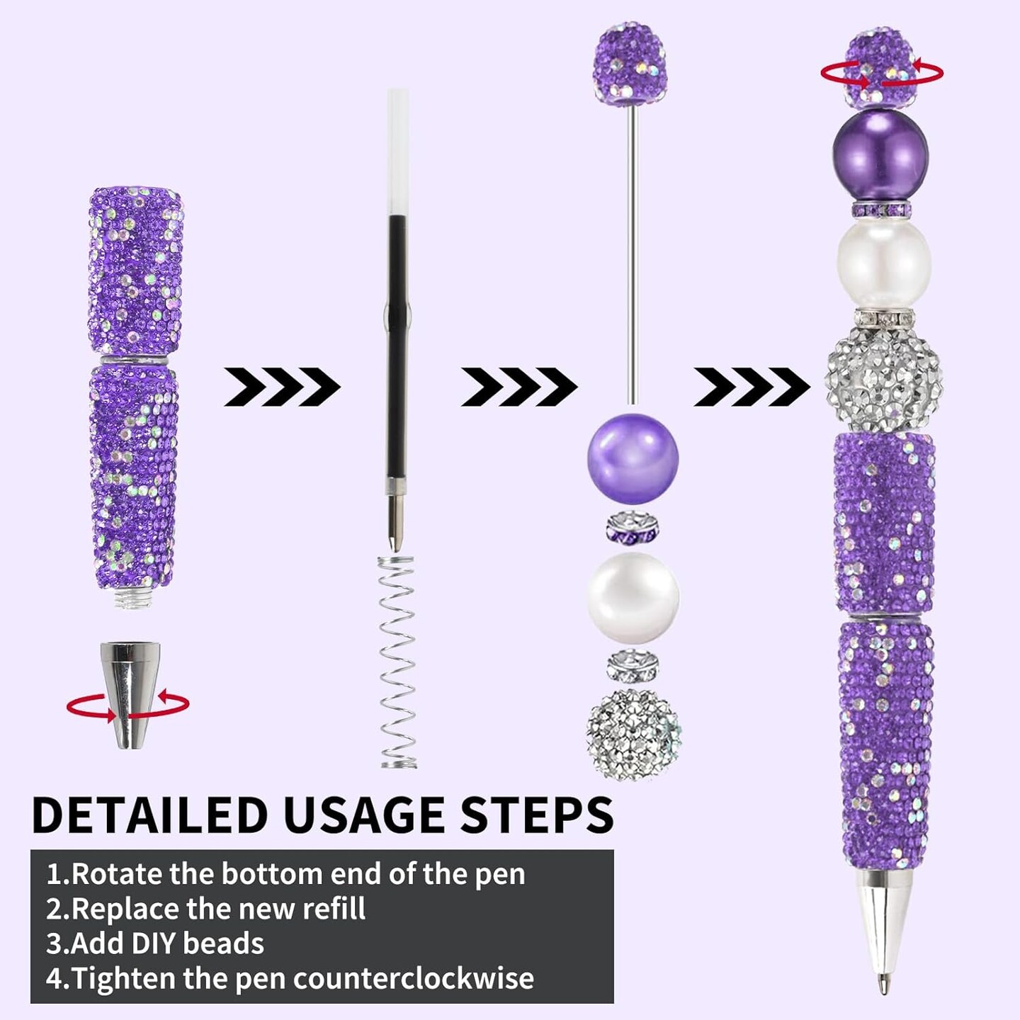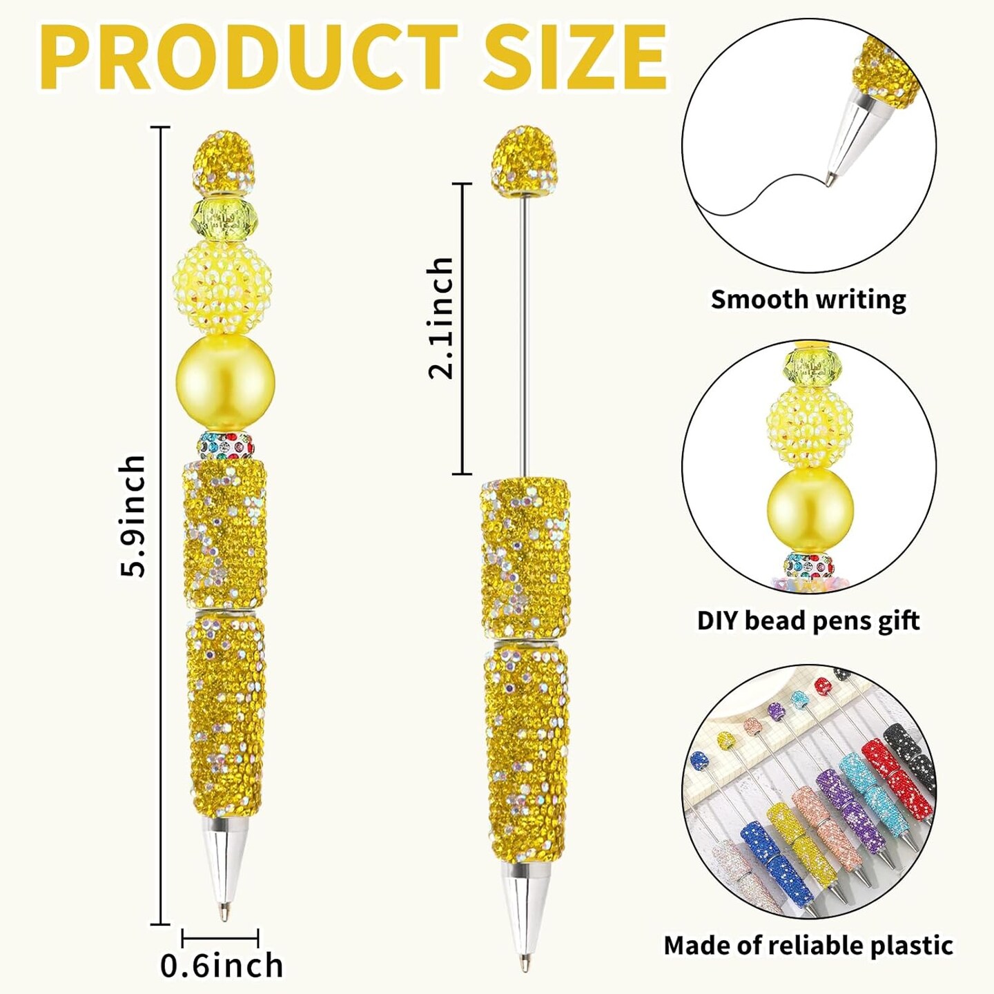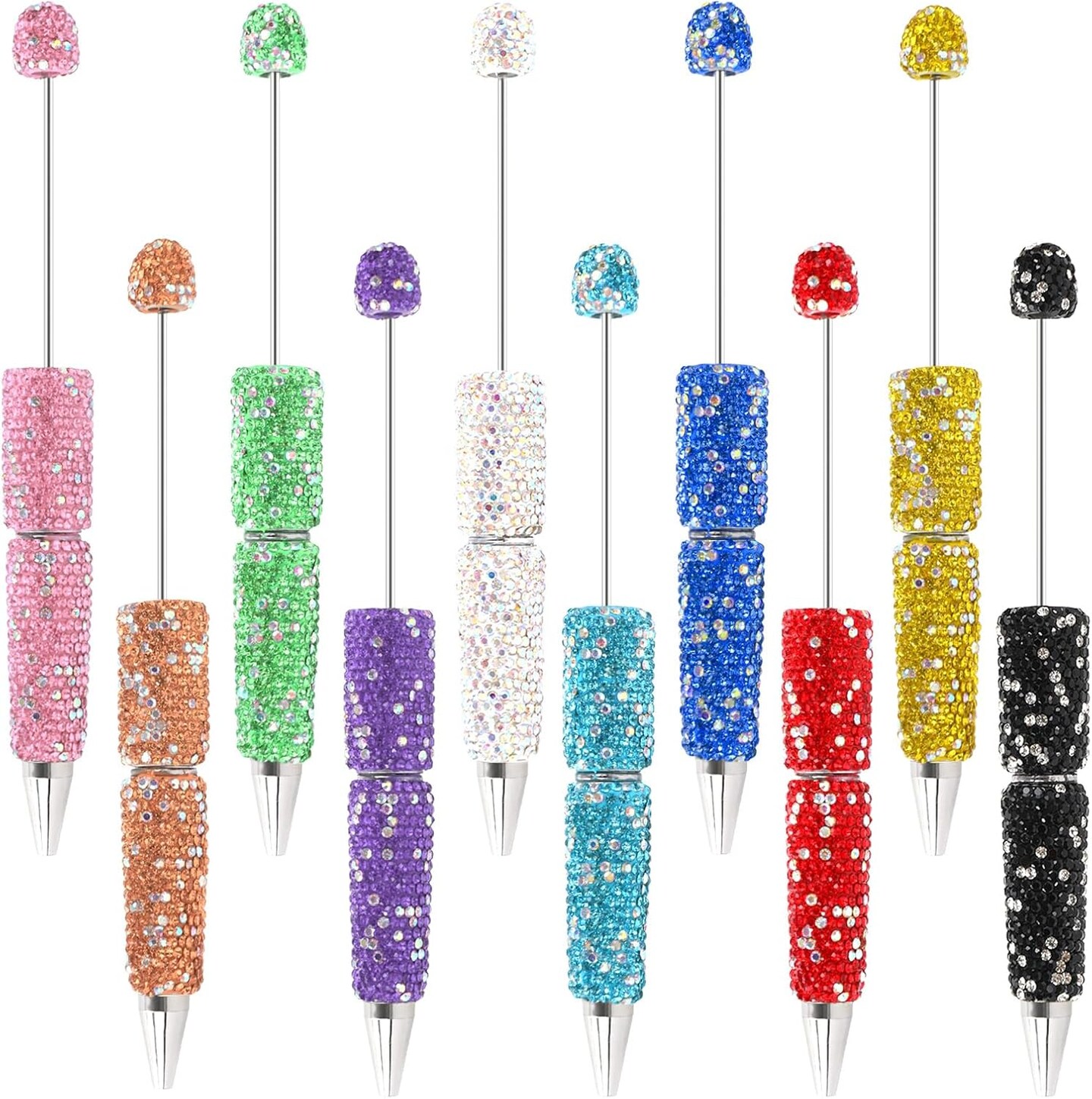 10Pcs Glitter Beadable Pen Full Rhinestone Plastic Bead