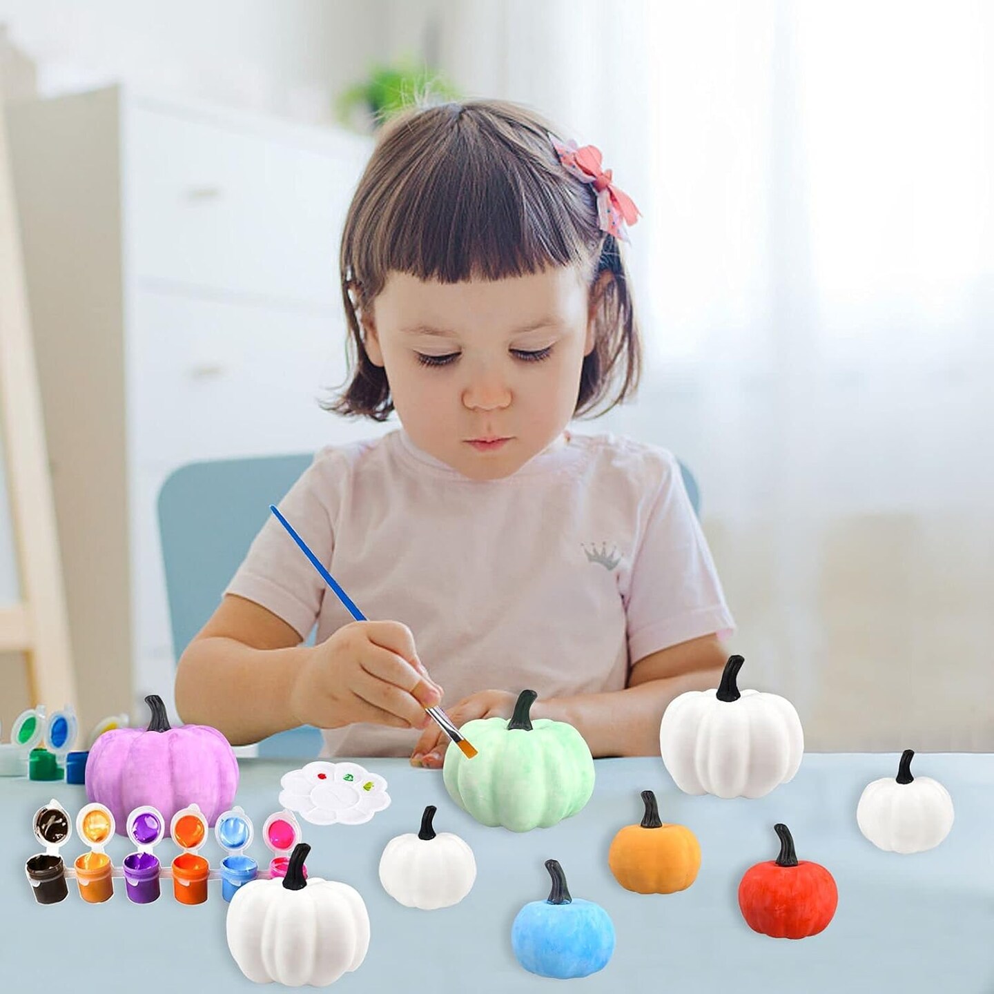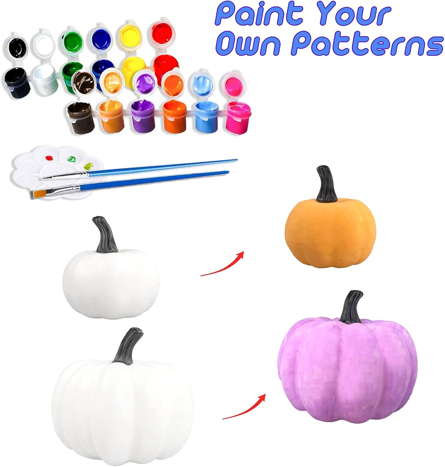 10Pcs Halloween Paint Your Own White Plastic Artificial Pumpkin Decorating Craft Kit