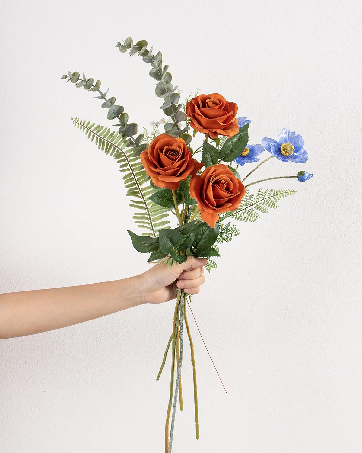 10pcs Silk Roses Artificial Flowers - Burnt Orange