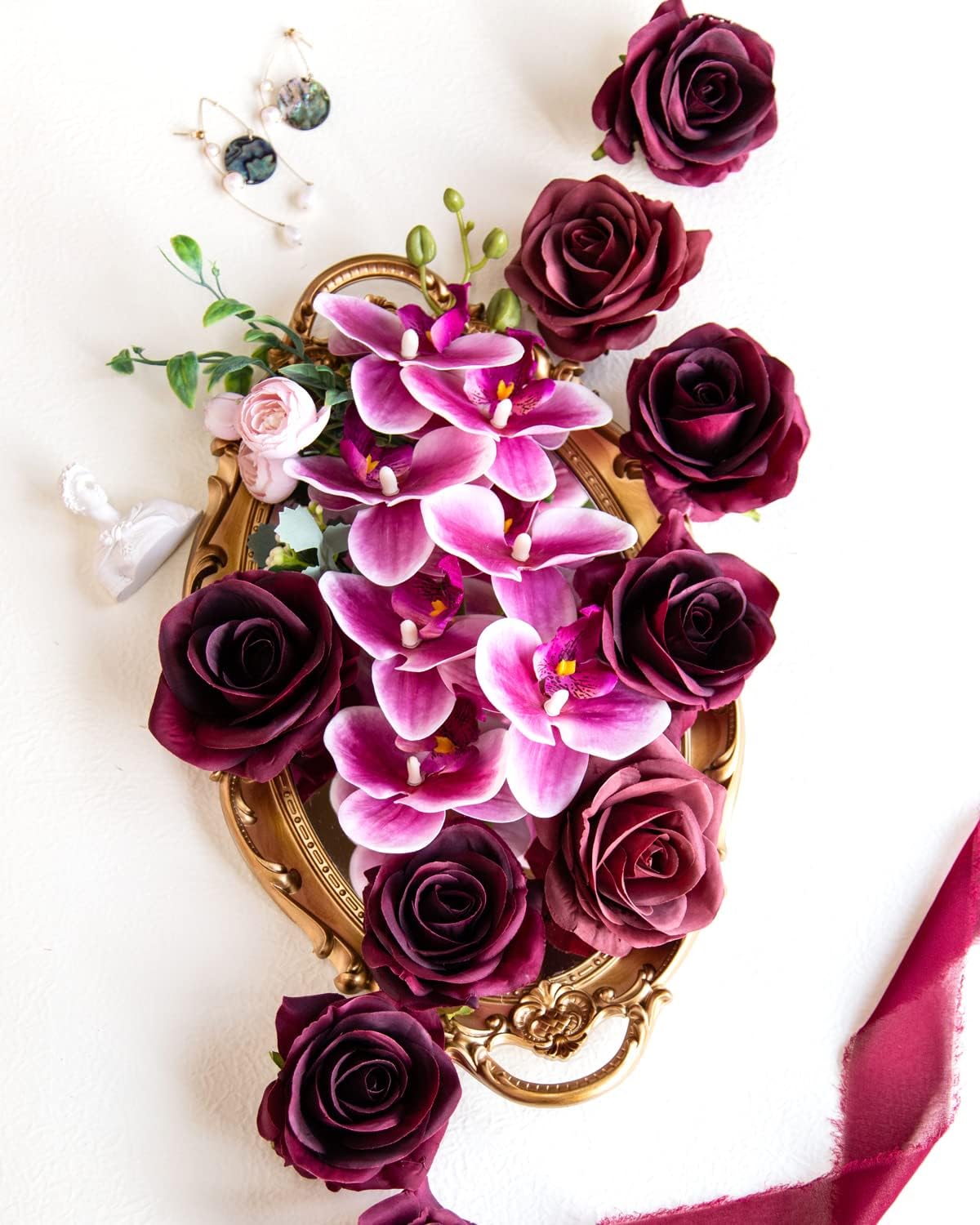 10pcs Silk Roses Artificial Flowers Fake Burgundy Rose Bouquet for Arrangement Wedding Party Home Decoration