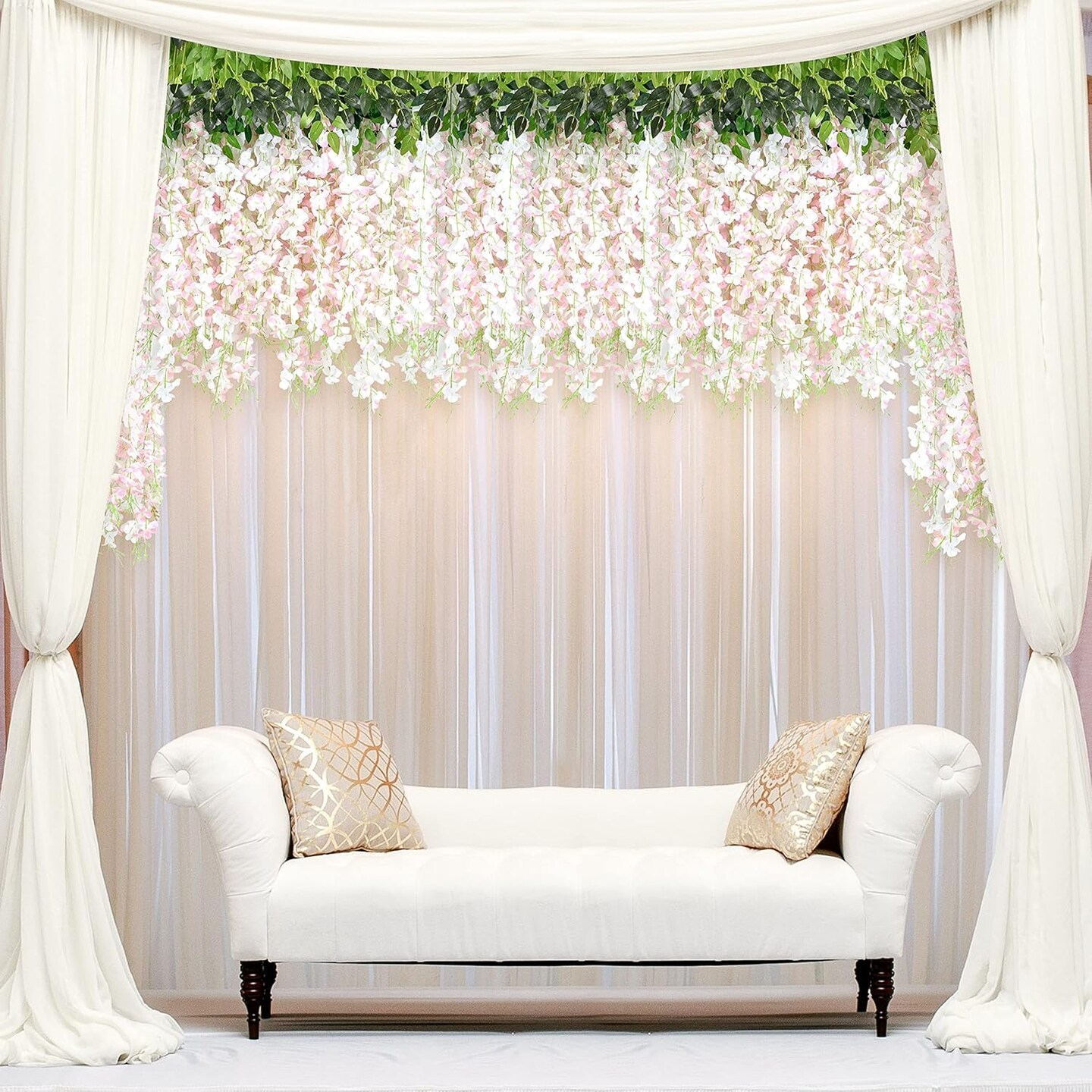 10Pcs White & Pink Fake Wisteria Hanging Flower Garlands