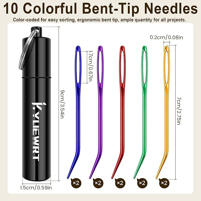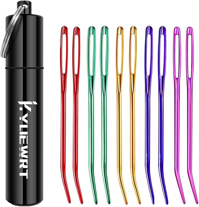 10Pcs Yarn Darning Tapestry Needle,Large Big Eye Weaving Needle Bent Needles with Aluminum Storage Tube