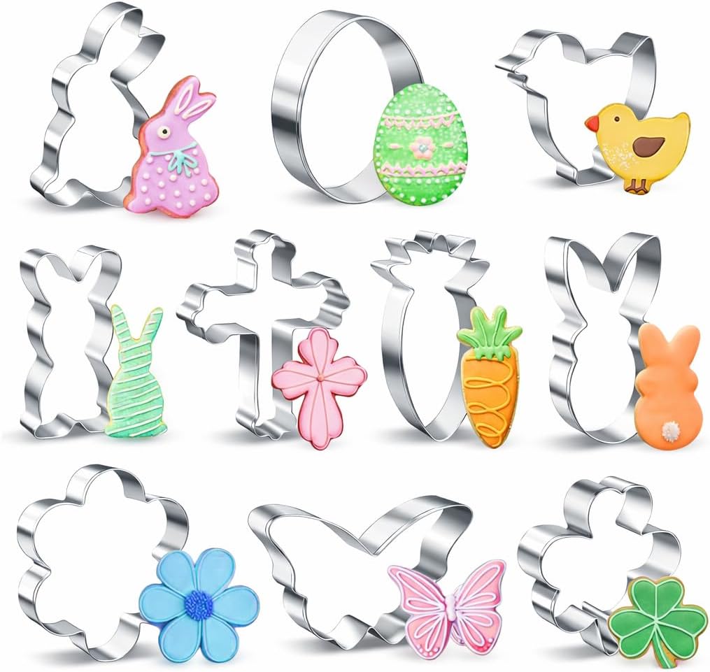 10-Piece Easter Cookie Cutter Set – Stainless Steel Bunny, Egg & Chick Shapes for Cookies, Biscuit, Fondant & Dough