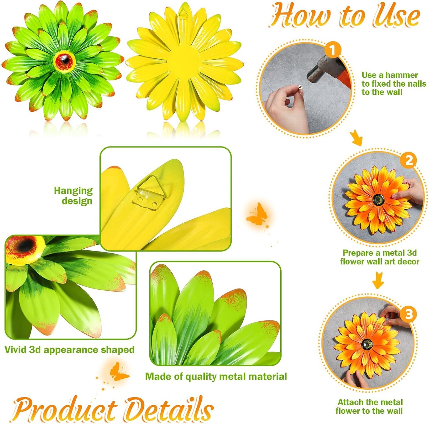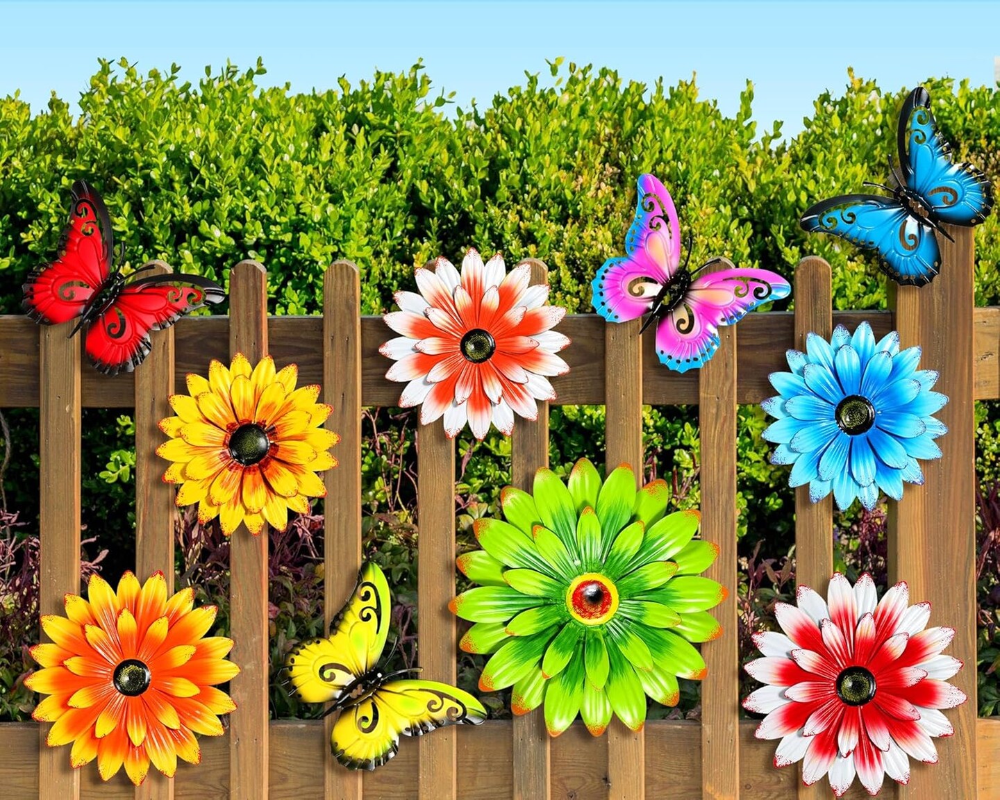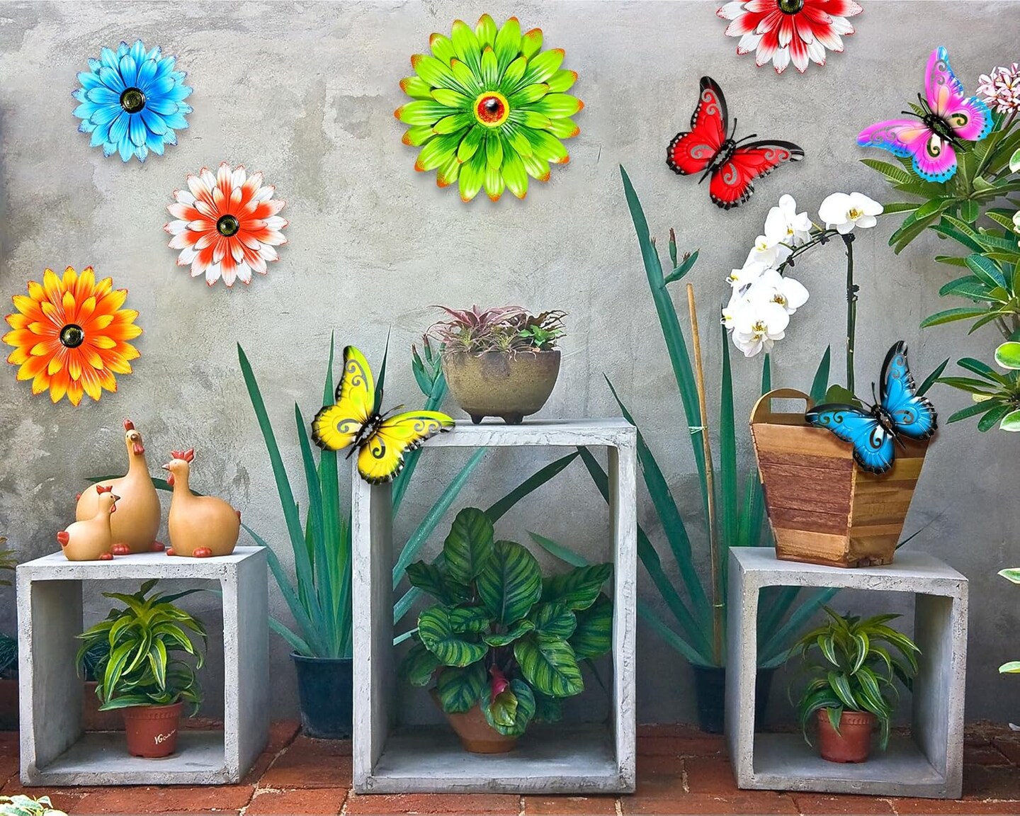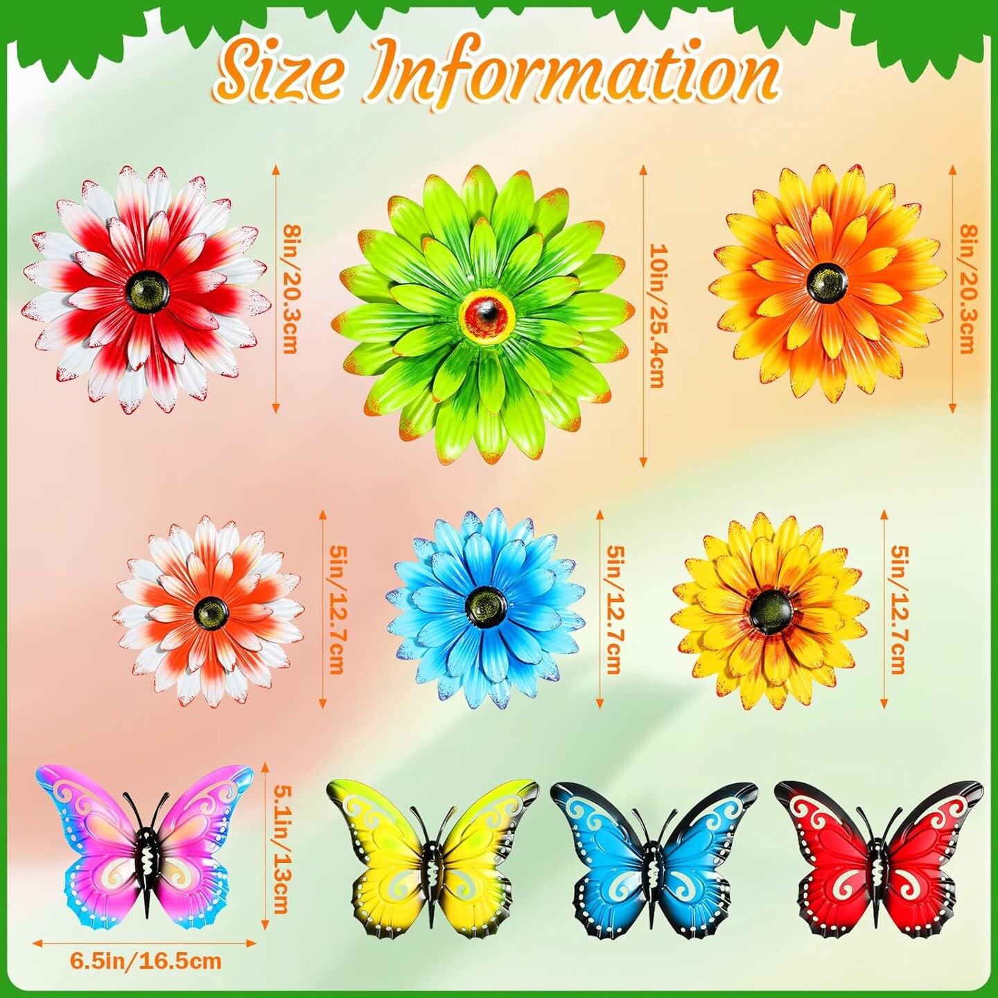 10-Piece Vintage Metal Flower & Butterfly Wall Art Set – 3D Outdoor Garden & Balcony Decor