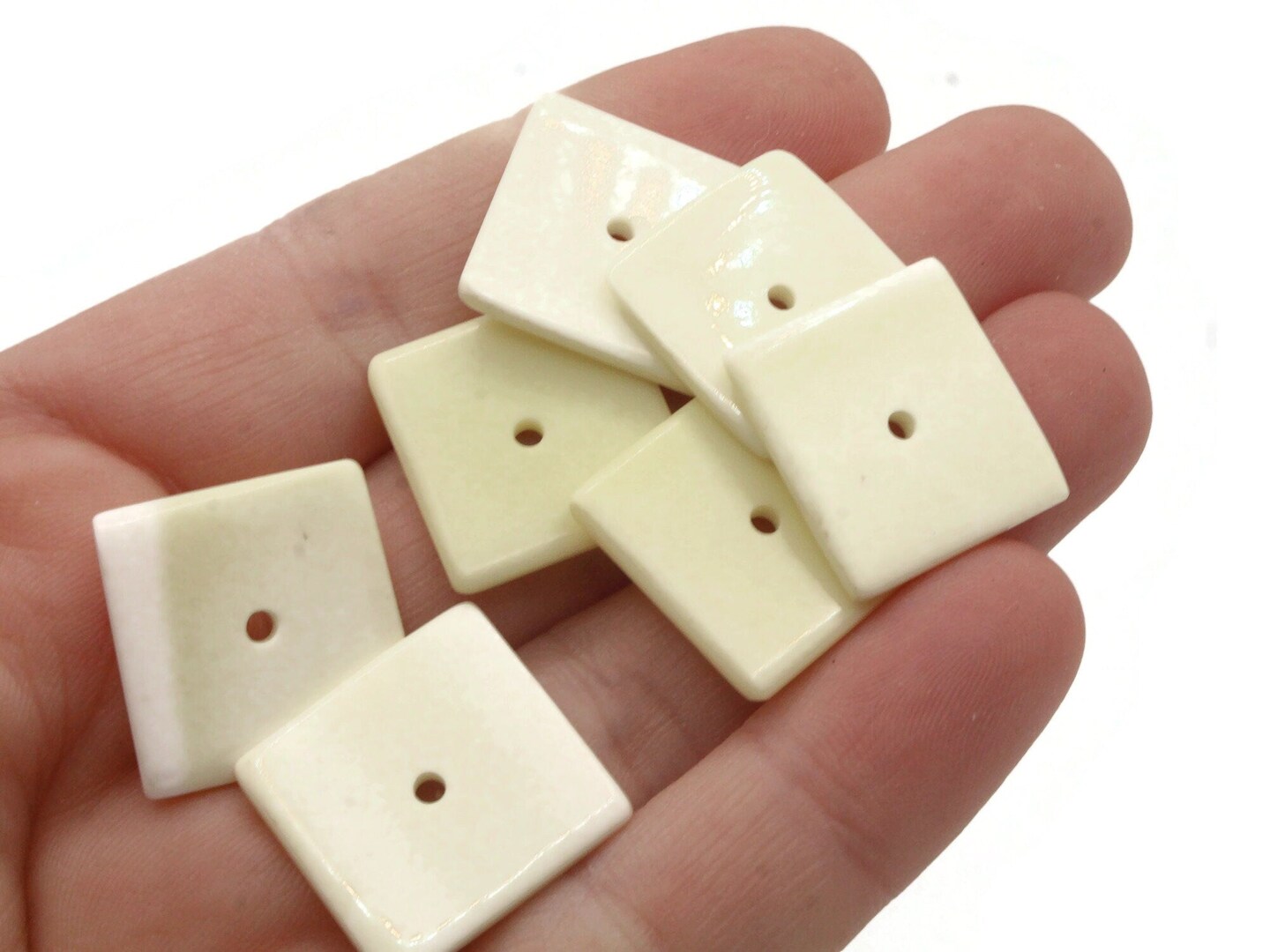 11 18mm Ivory Vintage Plastic Flat Square Beads