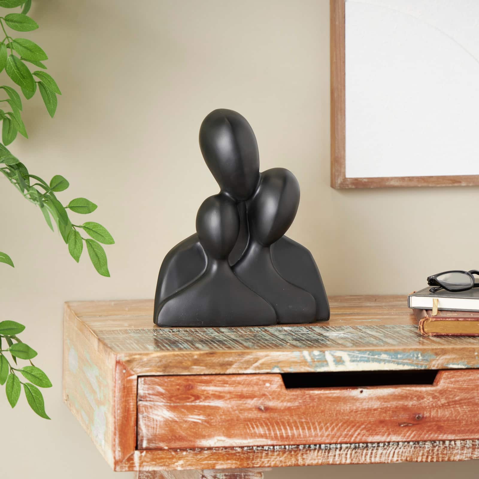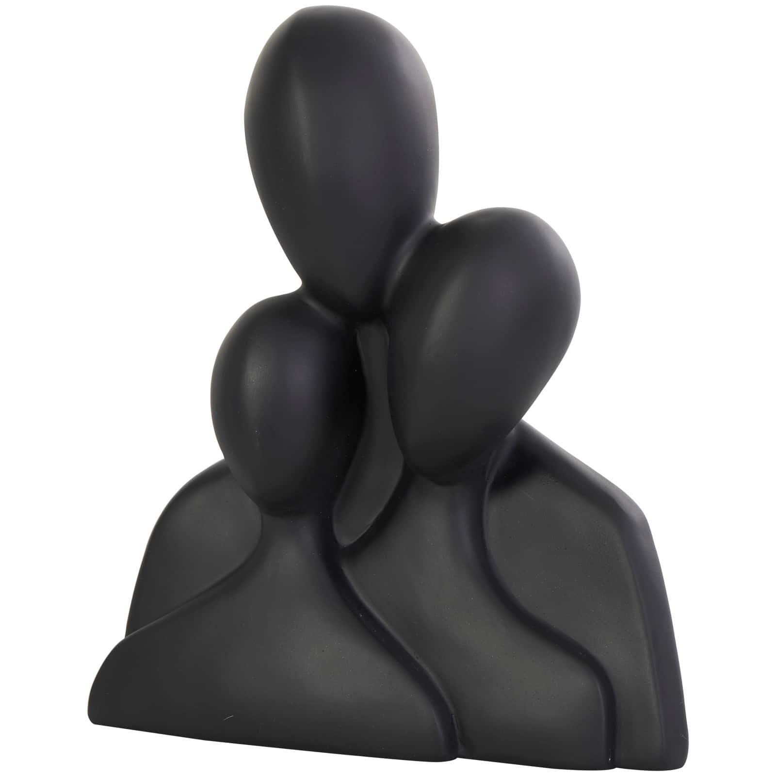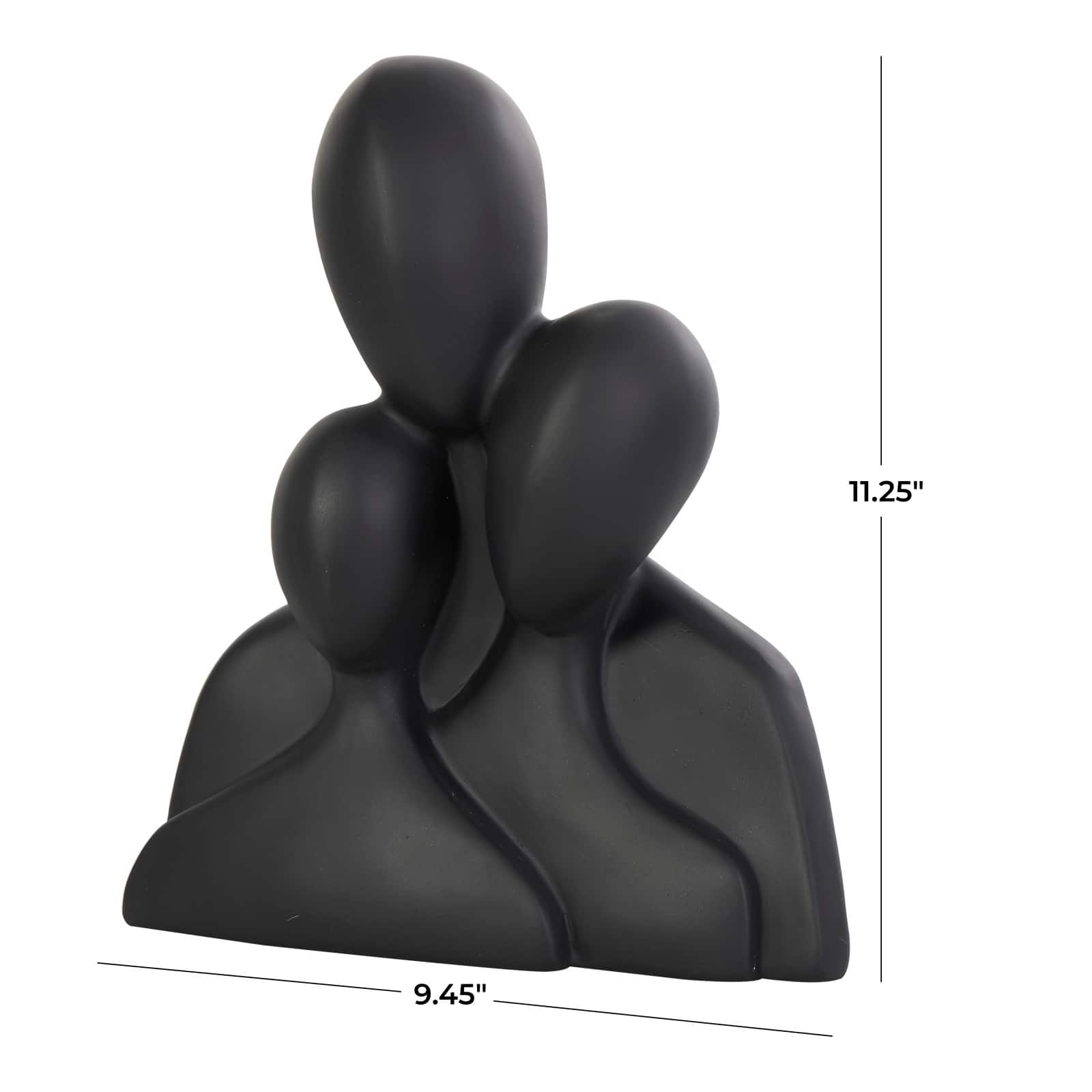 11" Black Polystone Abstract Nesting Family 3-Head Sculpture