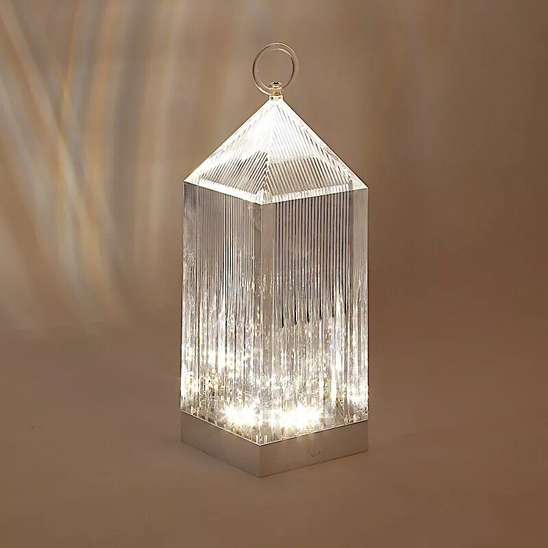 11" Clear Acrylic Crystal Lantern Desk Lamp Decorative LED Light Party Events