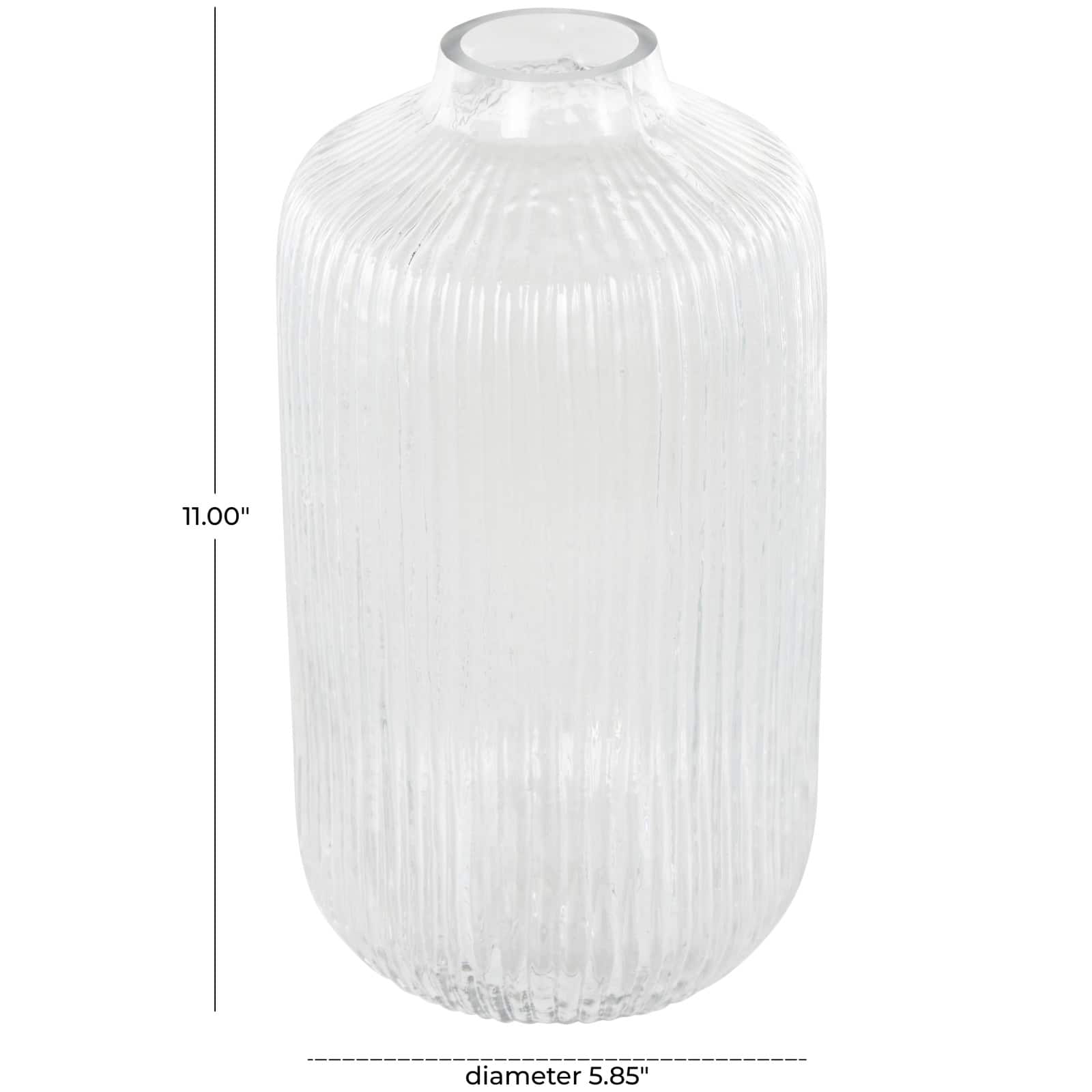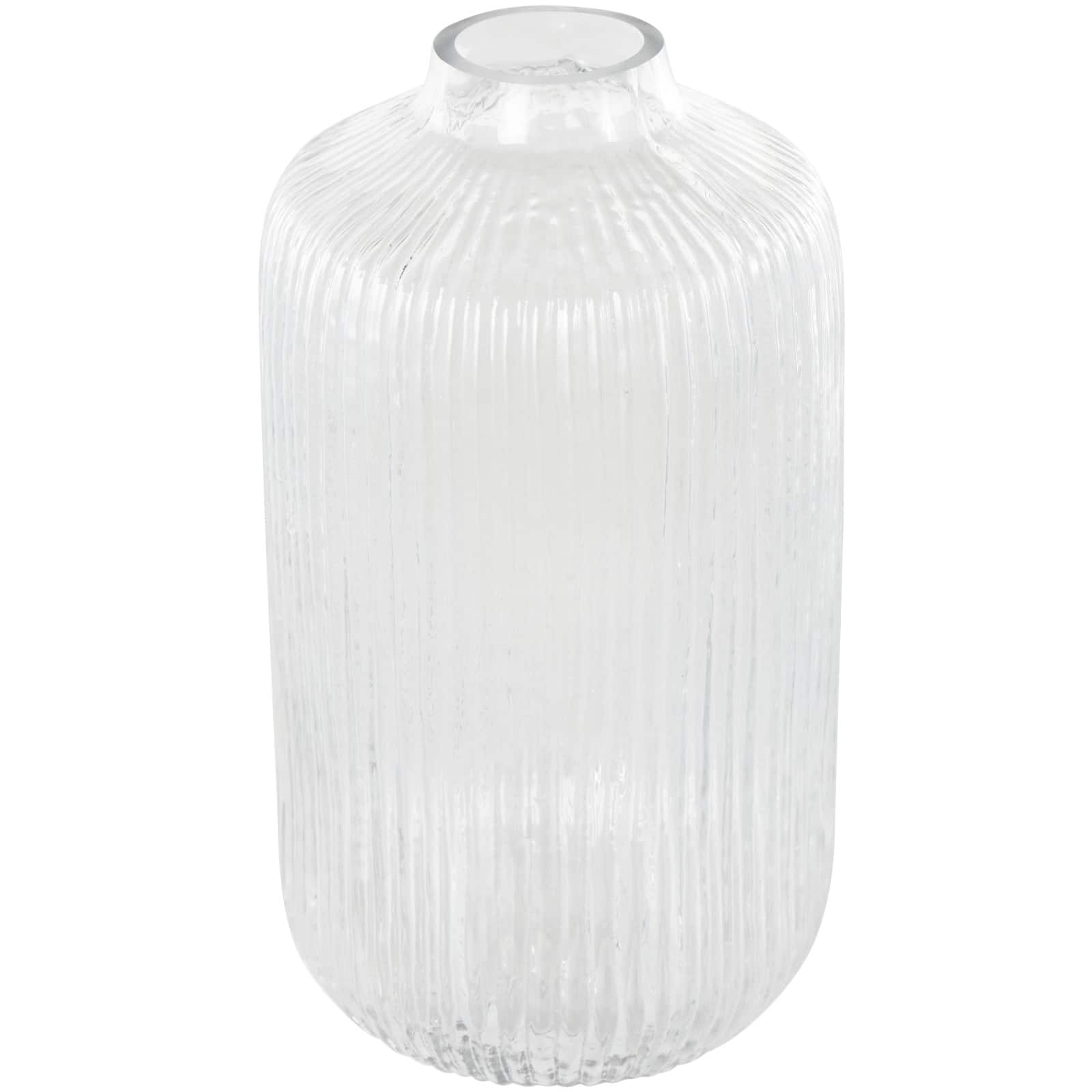 11" Clear Glass Ribbed Fluted Decorative Vase