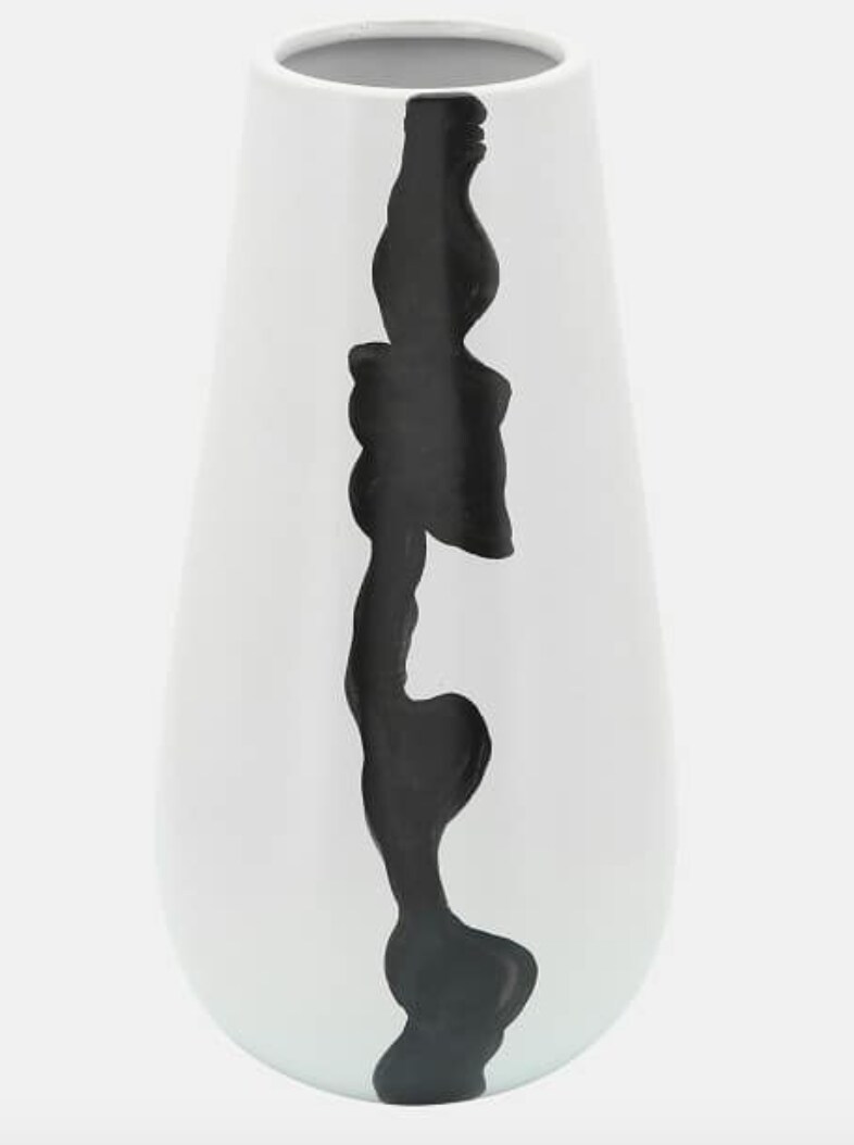 11" Cleo Medium Black and White Modern Ceramic Vase, Minimalist Home Décor Accent, Contemporary Table & Shelf Vase
