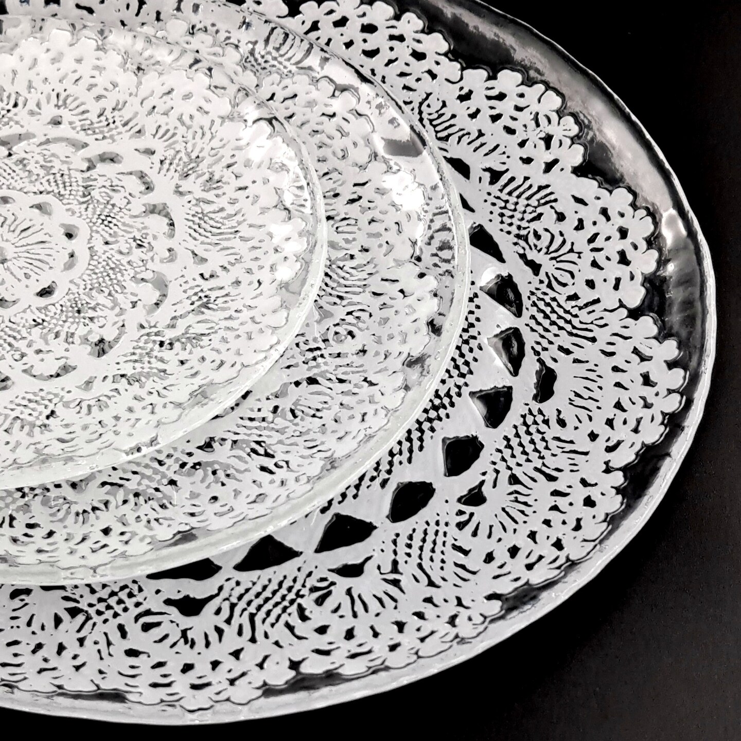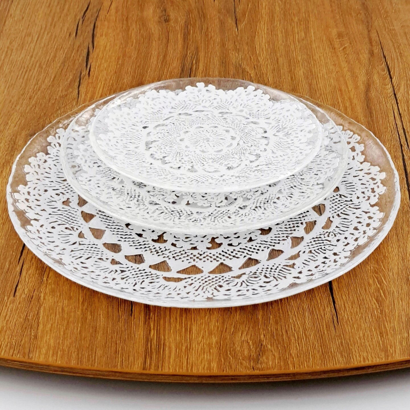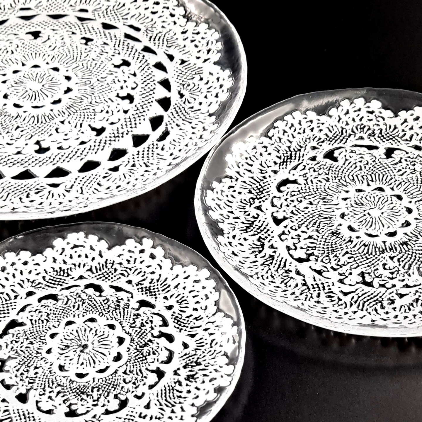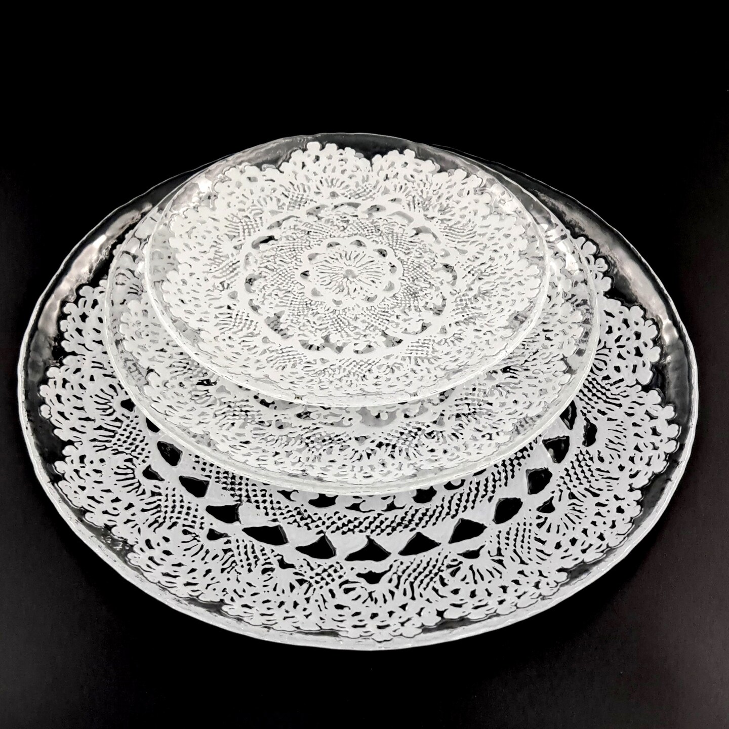 11" Handmade Embossed Lace Glass Plate Ivory White Accent