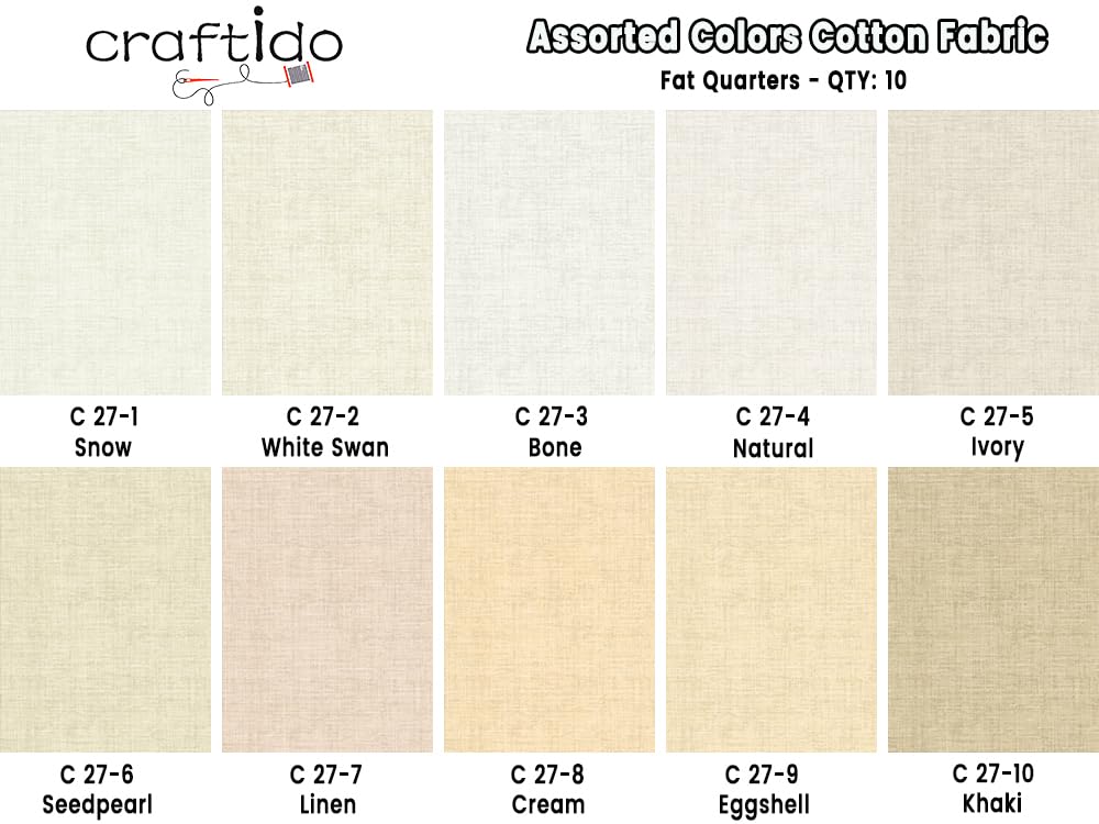 11 Options Solids with Tweed Tonals - Assorted Color Cotton Quilting Fabric Bundles 10pcs Fat Quarters 18"x21" - Medium Weight 5.2oz - for Quilting, Sewing and Crafts - Not Quite White