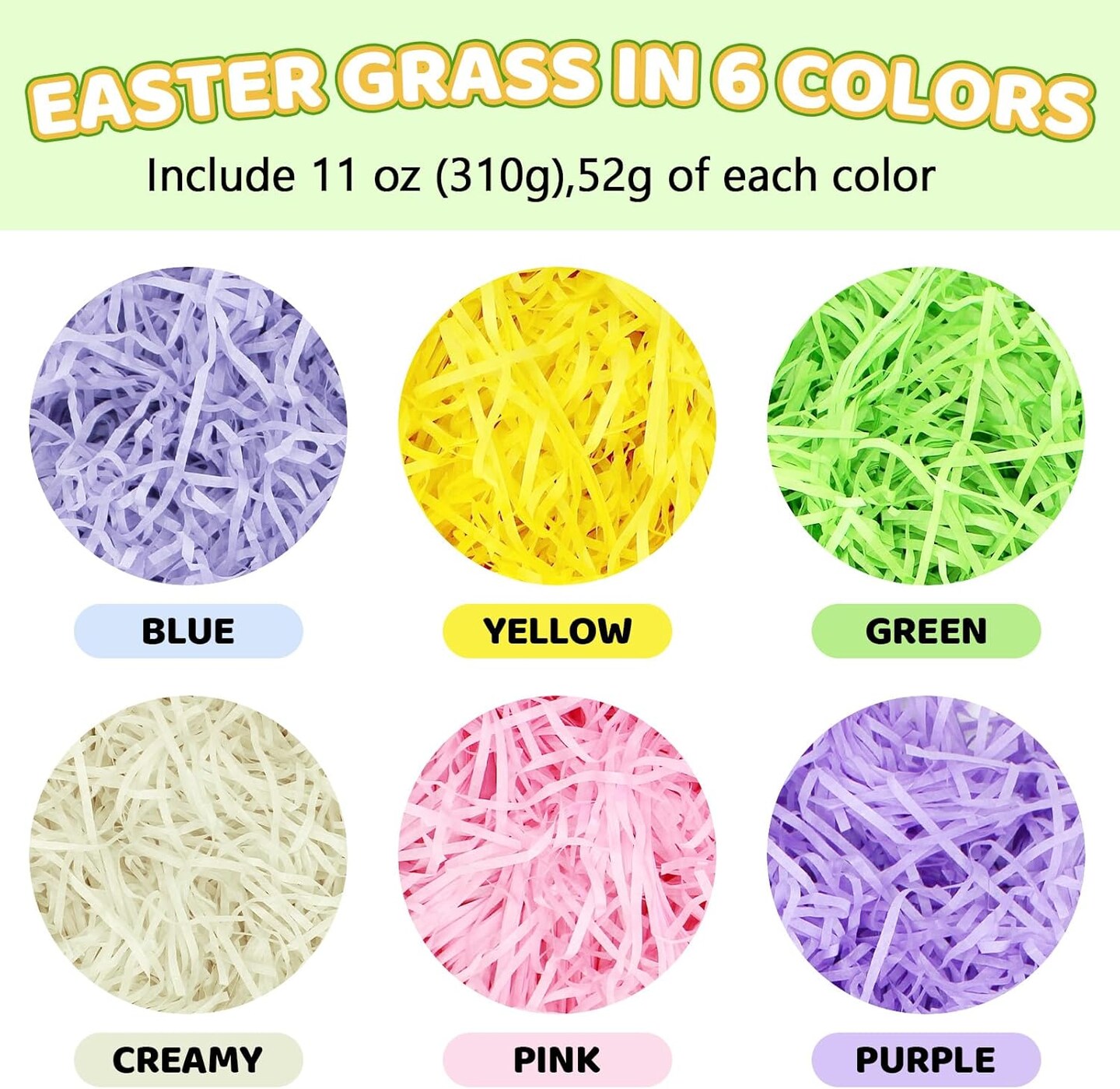 11 oz Pastel Easter Grass for Baskets, Wrapping, Egg Hunts, and Favors. Recyclable.
