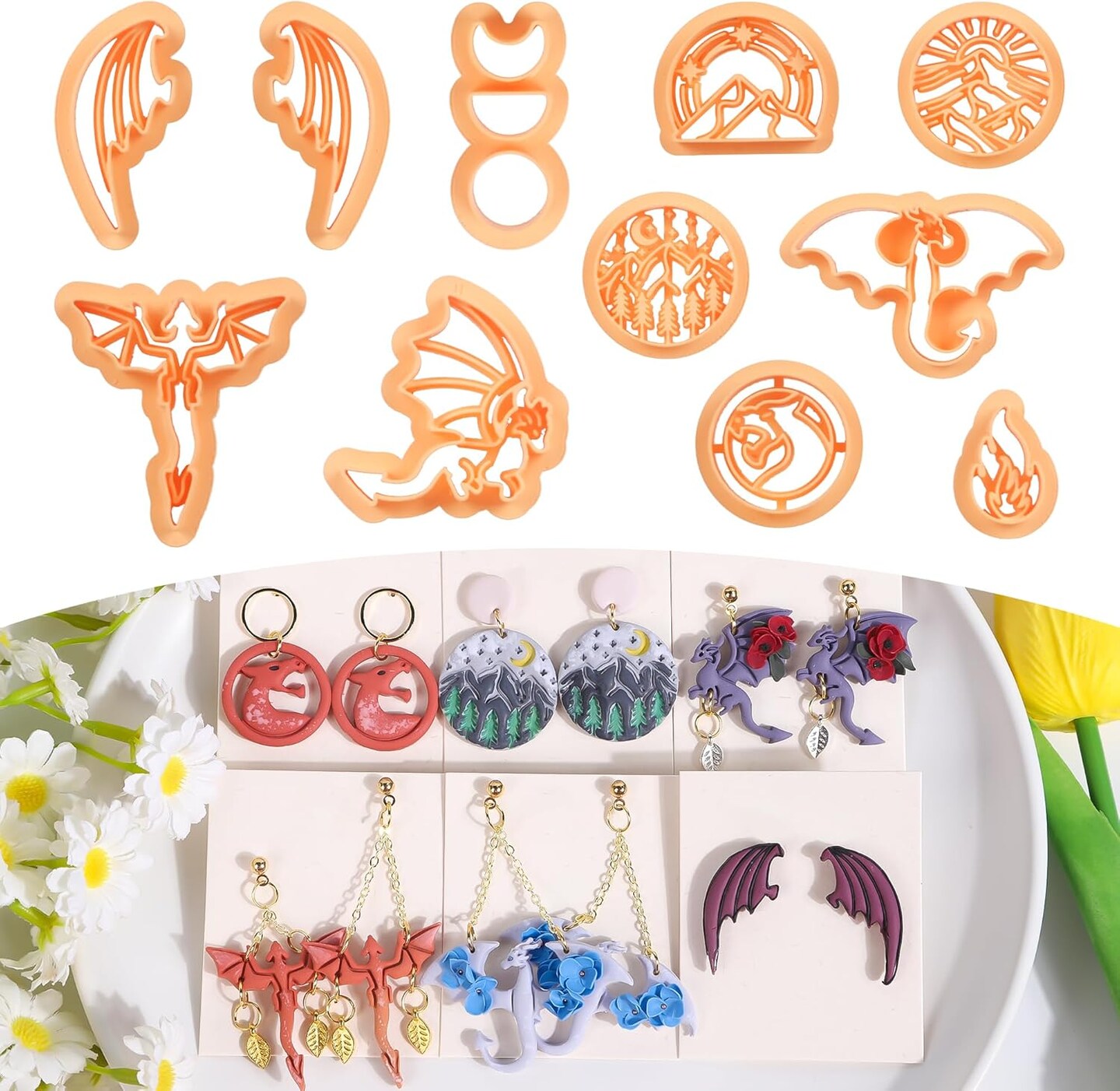 11 Pcs Dragon Embossed Cutters for Polymer Clay