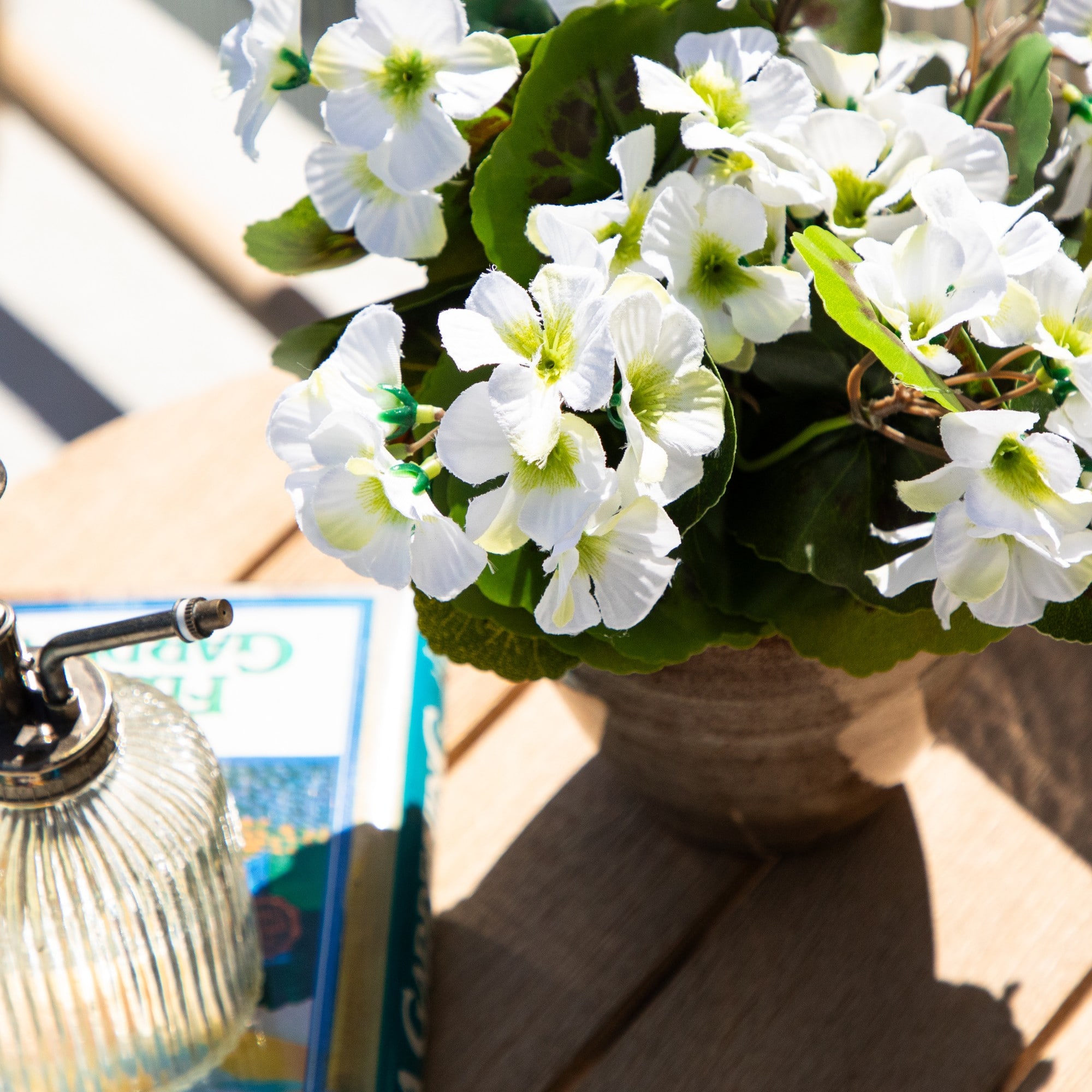 11" UV Resistant Artificial Geranium in Ceramic Planter (Indoor/Outdoor)