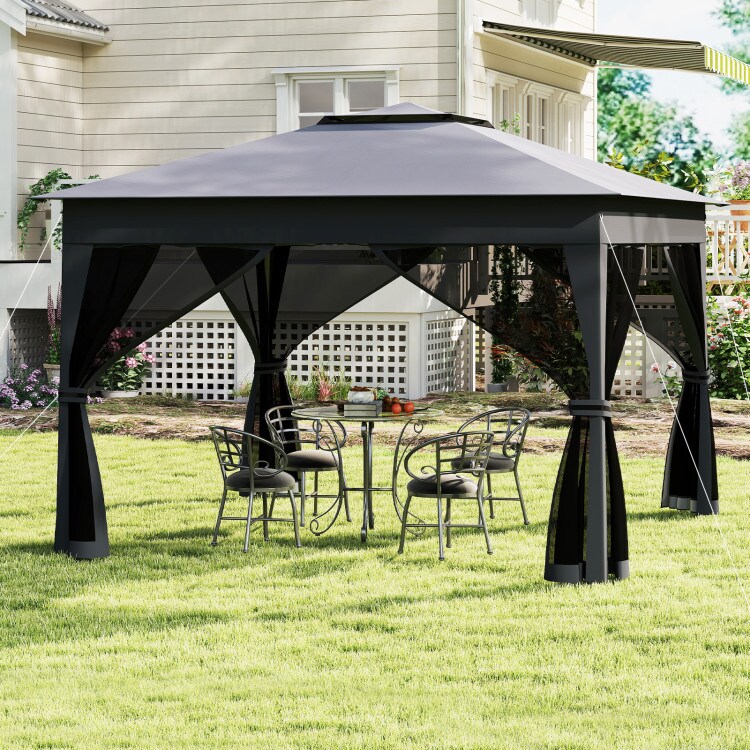 11 x 11ft Grey Portable Pop-Up Canopy Screen House with 4 Mesh Sidewalls and Adjustable Height