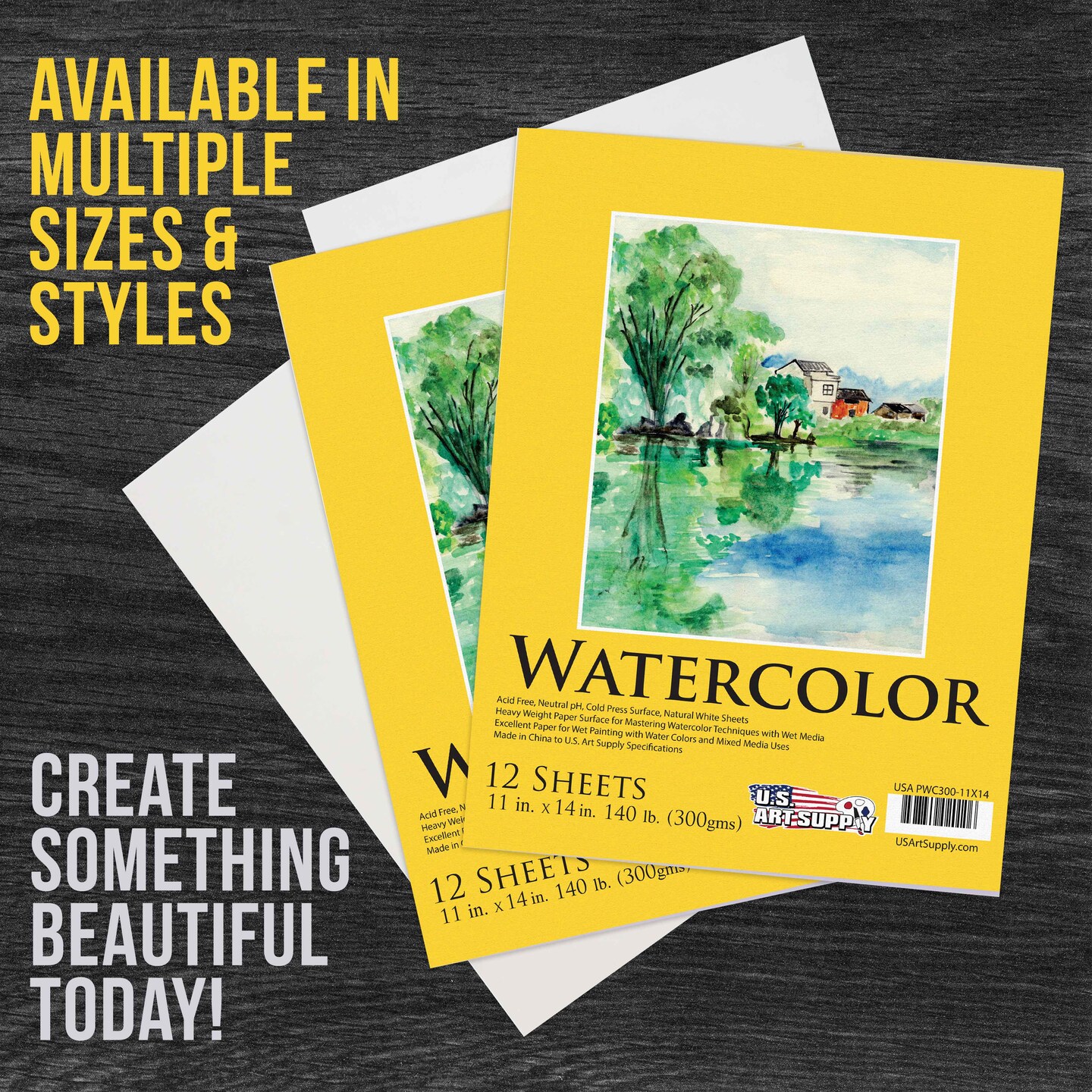 11" x 14" Premium Heavyweight Watercolor Paper Pad, Pack of 2 (12 Sheets Each), 140lb (300gsm) - Spiral Bound, Cold Pressed, Acid-Free, Wet, Water Color Paper - For Artists, Students