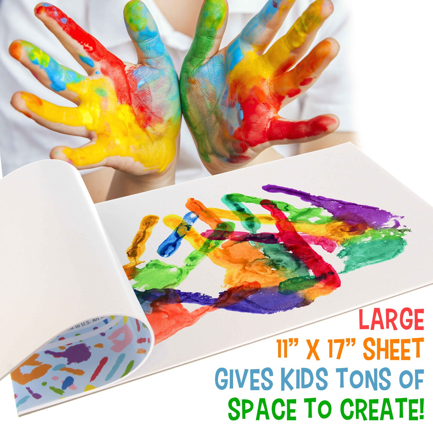 11” x 17" Large Finger Painting Pad (2 Pack, 25 Sheets Each) - 60lb (100gsm) Acid-Free Coated Sheets, Finger Paint Paper for Painting, Drawing, Crafts, Artwork - Kids, Toddlers