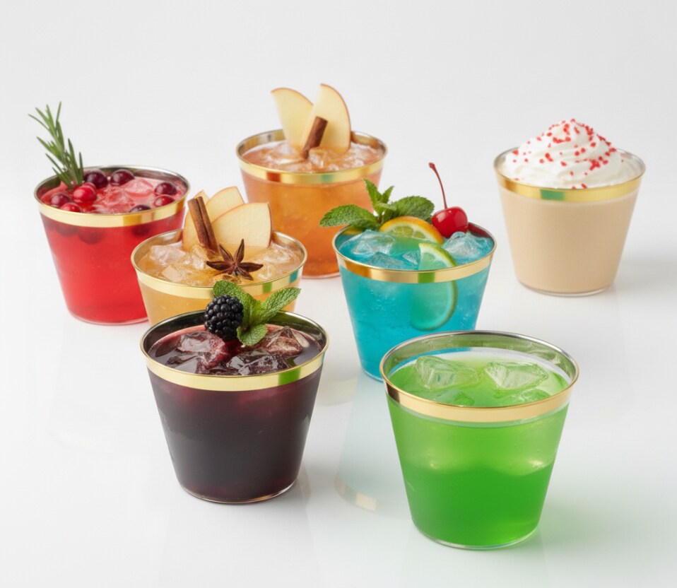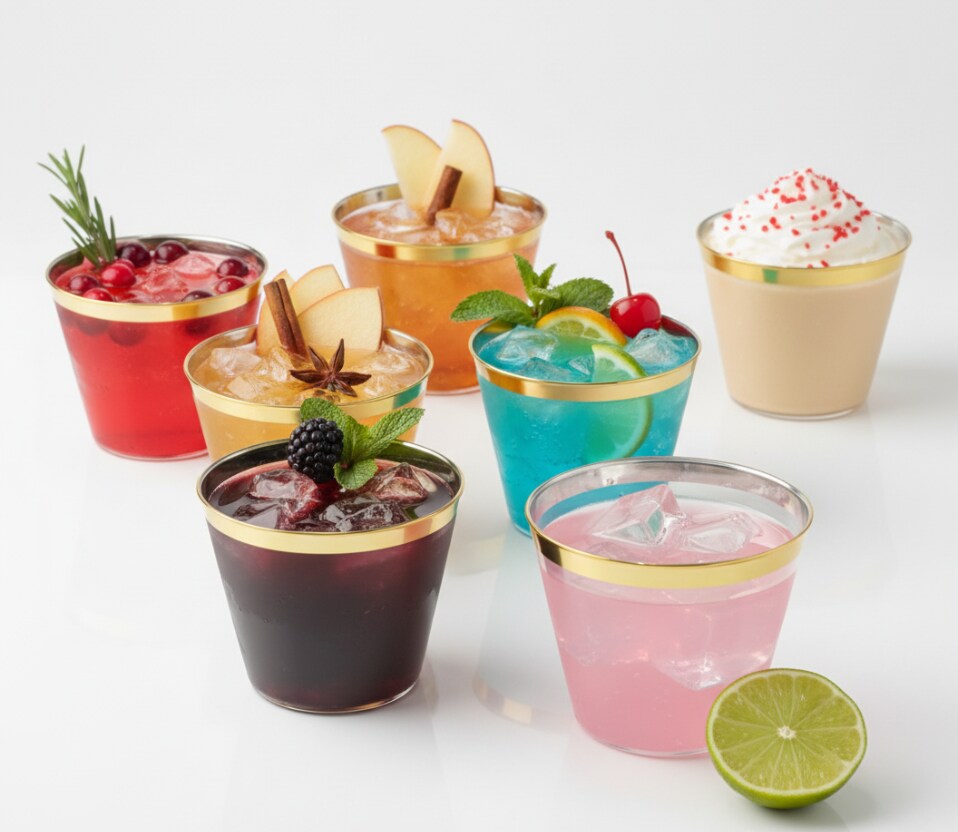 110 Pack 9 oz Gold 1 Line Clear Plastic Disposable Cups