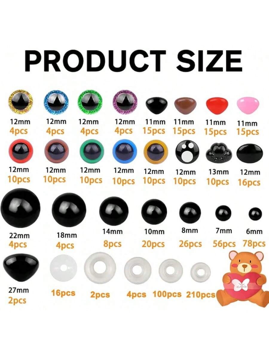 1100PCS Safety Eyes Noses for Crochet, 5-16mm Black Plastic Safety Eyes with Washers