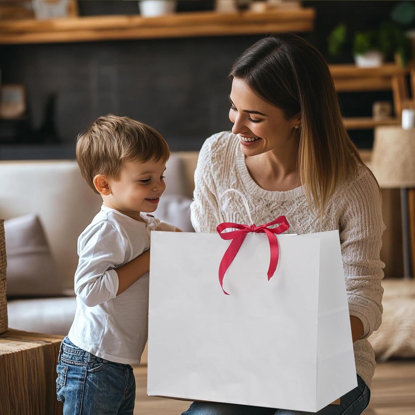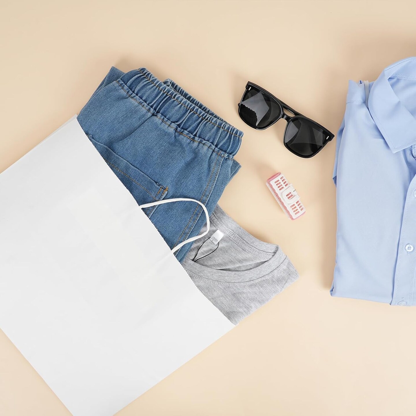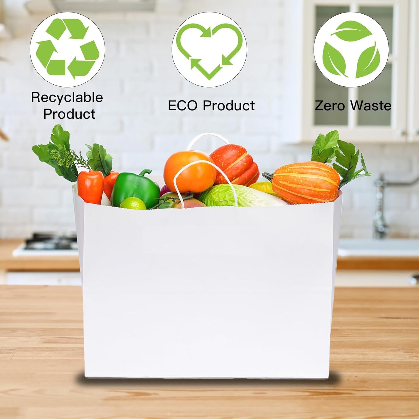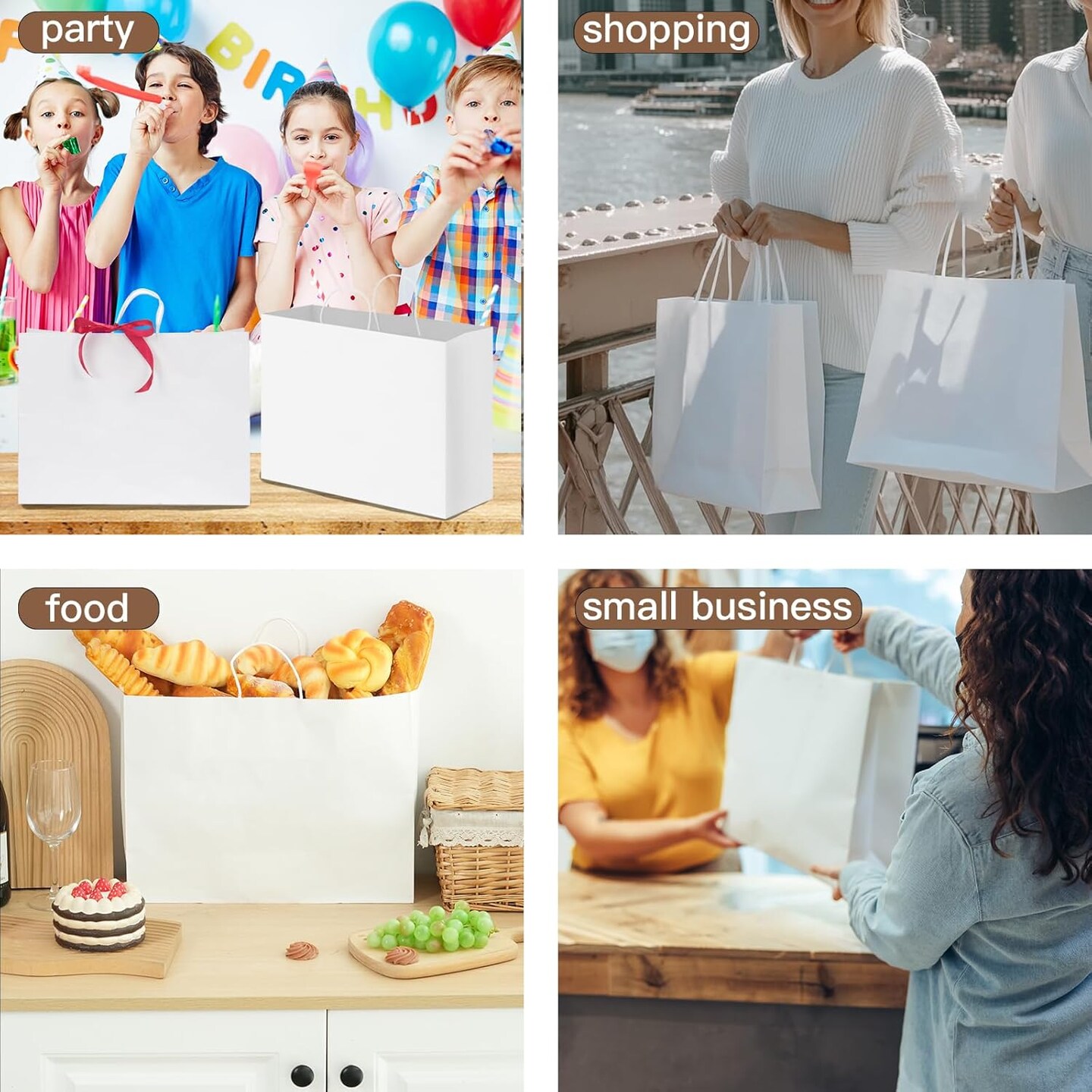 110pcs 16x6x12 Inch White Paper Bags with Handles, Kraft Large Paper Gift Bags Bulk for Small Business, Merchandise, Gifts, Shopping, Grocery